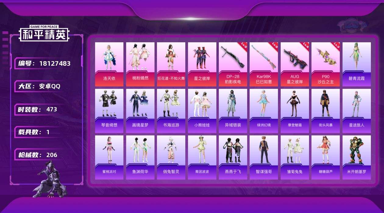 【623099】【可二次】【安卓QQ】龟仙人 星之彼岸 P90-沙丘之主 M24-奇异狩猎者 洛天依 AUG-星之彼岸 极速红龙