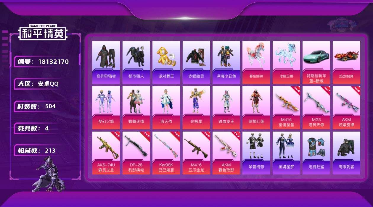 【623622】【可二次】【安卓QQ】铁血龙王 龟仙人 焰龙咆哮 M416-五爪金龙 漫步者 都市猎人 M24-奇异狩猎者 洛天依 赤蝎幽灵 M416-至情至圣 恶魔人蛛 深海小丑鱼 蝶舞迷情 特斯拉R水滴蓝 桀骜红莲 浪漫天命 迅捷狂鲨 奇异狩猎者 MG3-洛神天依 狂沙舞者 M762-风花雪月 AKM-炫紫旋律 梦幻火箭 粉红小猪 派对舞王 绝色倾城飞行器 暗影哥特