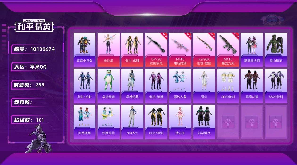 游戏区服:和平精英 / 苹果系统 / QQ帐号