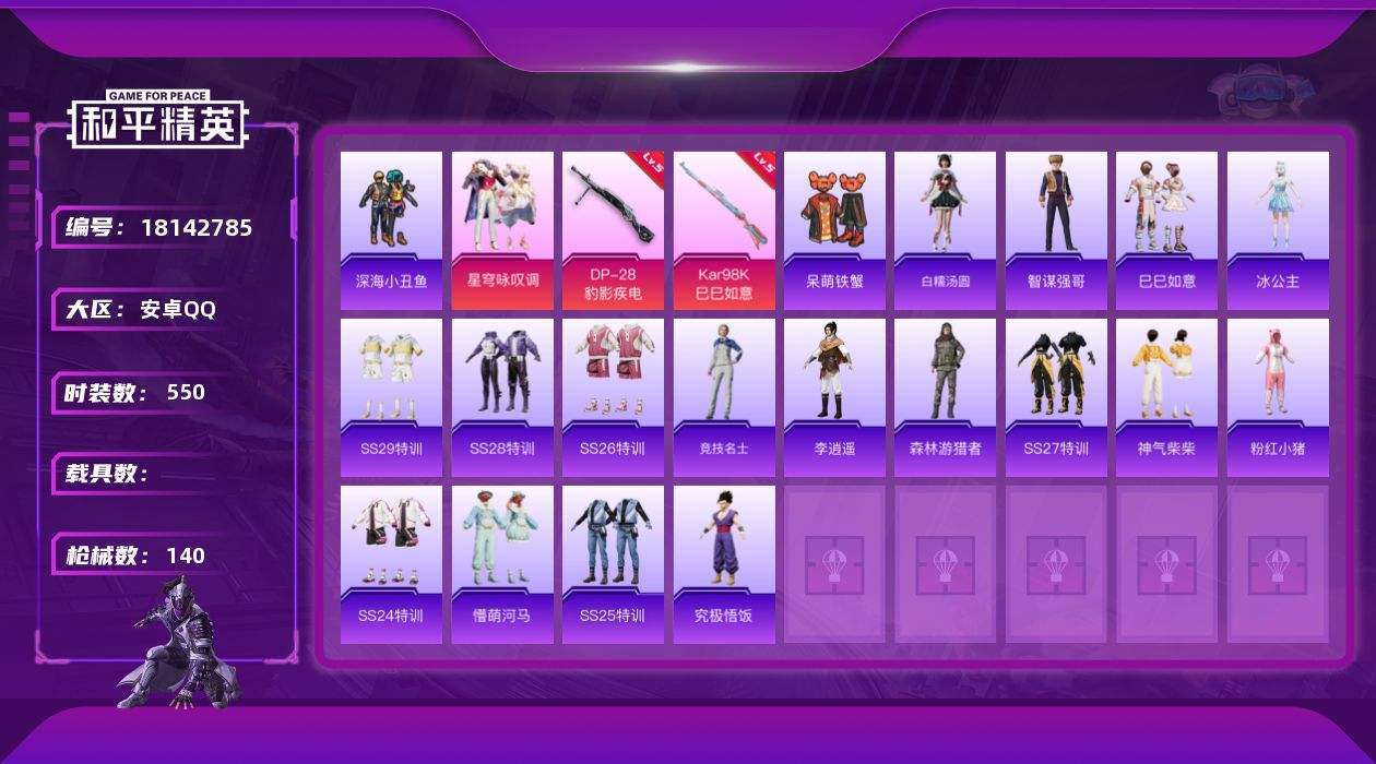 游戏区服:和平精英 / 安卓系统 / QQ账号