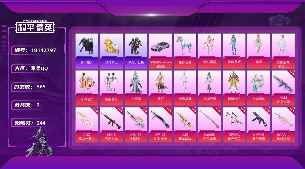 【625058】【可二次】【苹果QQ】龟仙人 星梦玉骢 M416-五爪金龙 漫步者 花间之火 都市猎人 MG3-洛神天依 狂沙舞者 SCAR-L-锦绣绵绵 AUG-星梦奇缘 UMP45-量子极限 AKM-梦之光华 深海小丑鱼 智能音符 派对舞王 浪漫天命 暗影哥特