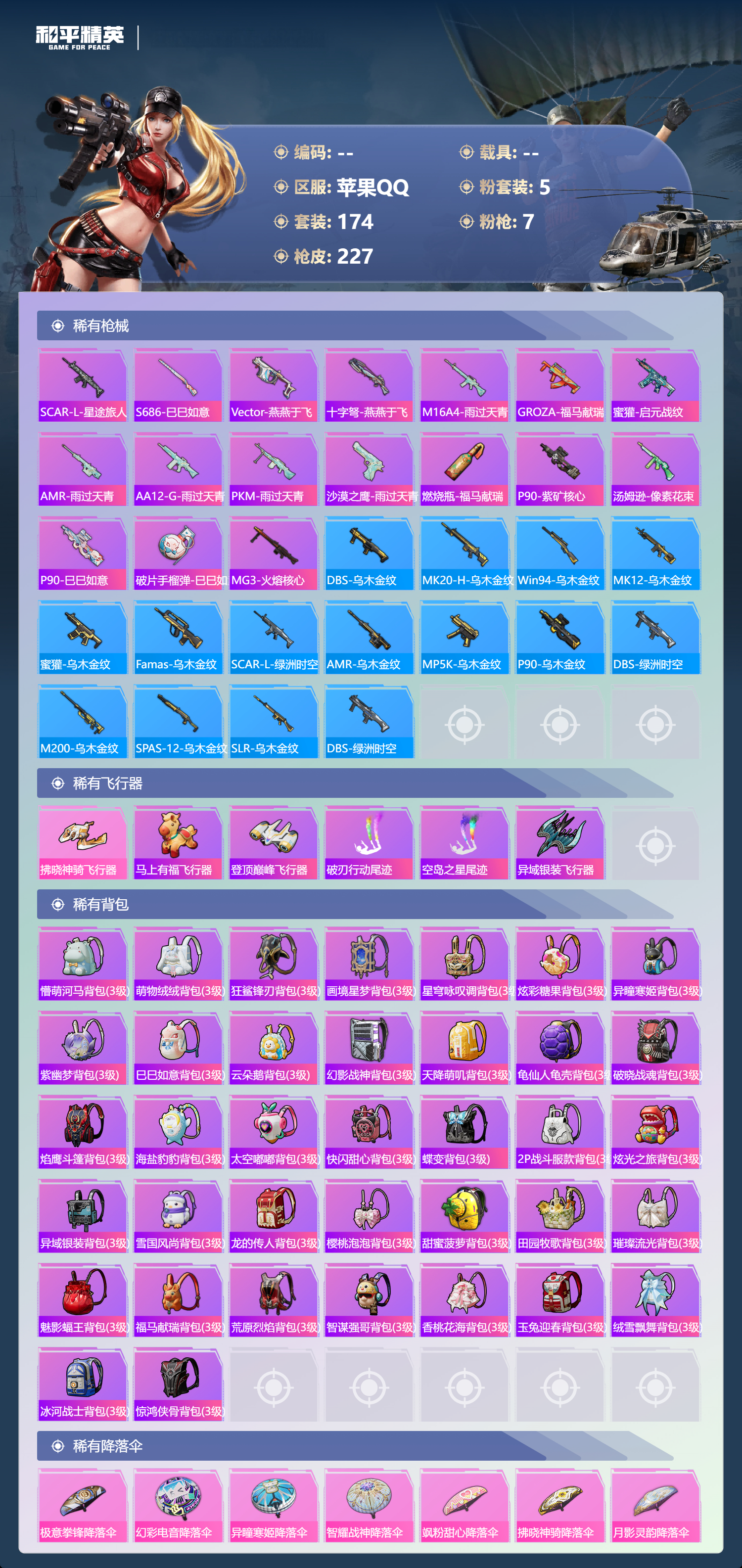 游戏区服:和平精英 / 苹果系统 / QQ帐号
