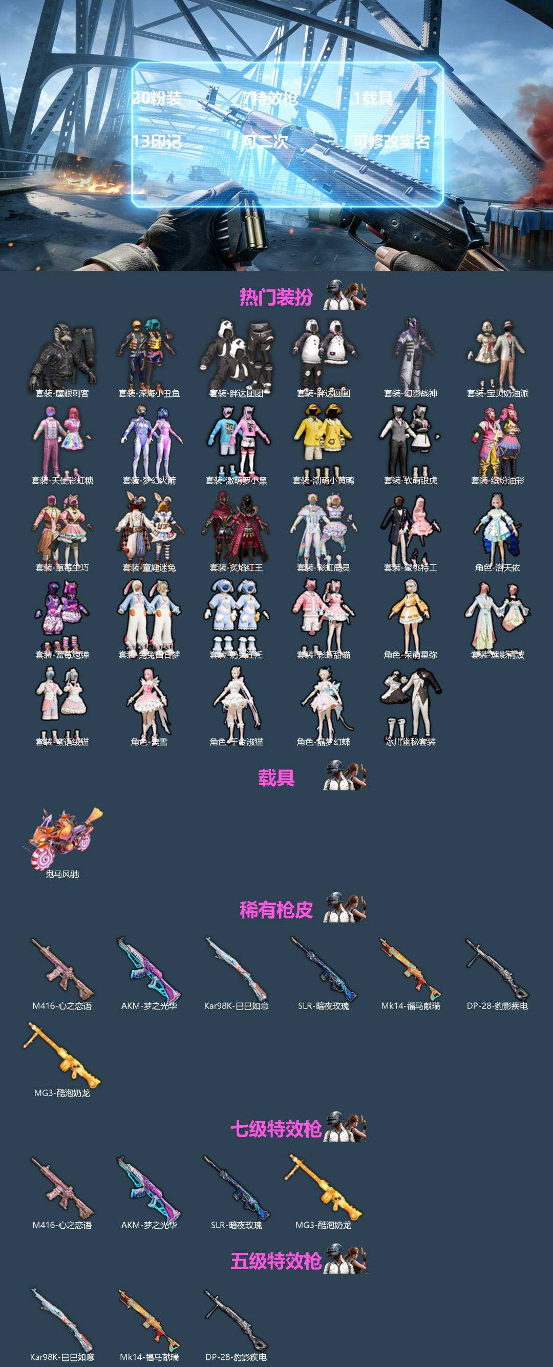 【625675】【可二次】【苹果QQ】蓝莓炮弹 龟仙人 炙焰红王 洛天依 M416-心之恋语 缤纷油彩 深海小丑鱼 童趣迷兔 激萌小黄鸭 浪漫天命 激萌罗小黑 胖达团团 胖达圆圆 软萌银虎 潮萌小黄鸭 彩虹鹿灵 蜜桃特工 梦幻火箭 鬼马风驰 AKM-梦之光华 天使彩虹糖 粉红小猪 草莓生巧 宝贝奶油派 幻影战神 SLR-暗夜玫瑰