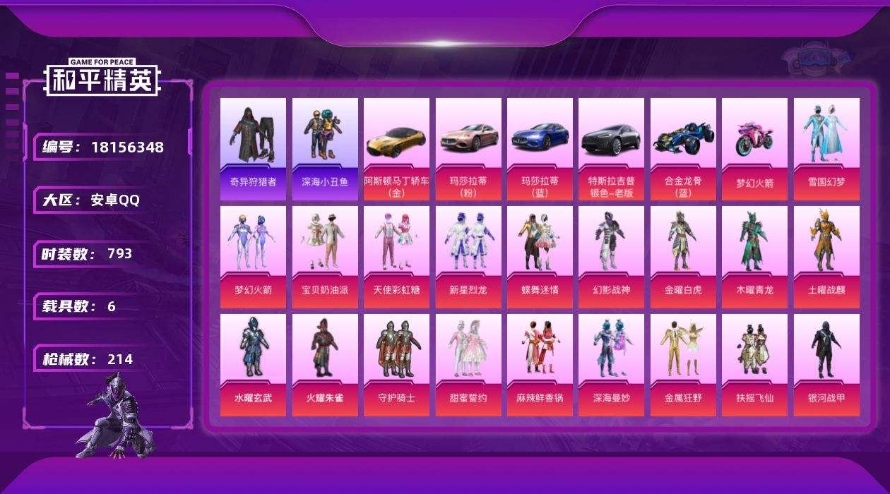 【626453】【可二次】【安卓QQ】合金龙骨蓝色 M762-甜蜜誓约 双人摩托梦幻火箭 金曜白虎 木耀青龙 金属狂野 银河战甲 土耀战麟 忍者信条 M762-奇异狩猎者 M416-仓鼠灰灰 M416-心之恋语 麻辣鲜香锅 深海小丑鱼 蝶舞迷情 Kar98K-伏魔团 纯白誓言 AKM-奇异狩猎者 SCAR-L-梦幻火箭 迅捷狂鲨 潮萌小黄鸭 黑色刀锋 水耀玄武 玛莎拉蒂蓝色 AKM-炫紫旋律 金