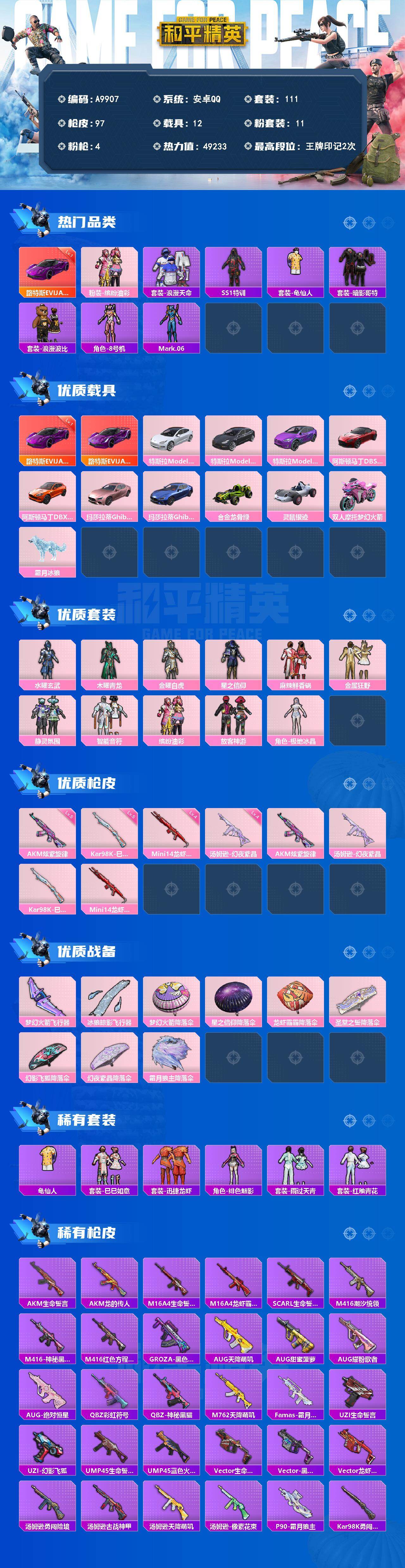 游戏区服:和平精英 / 安卓系统 / QQ账号