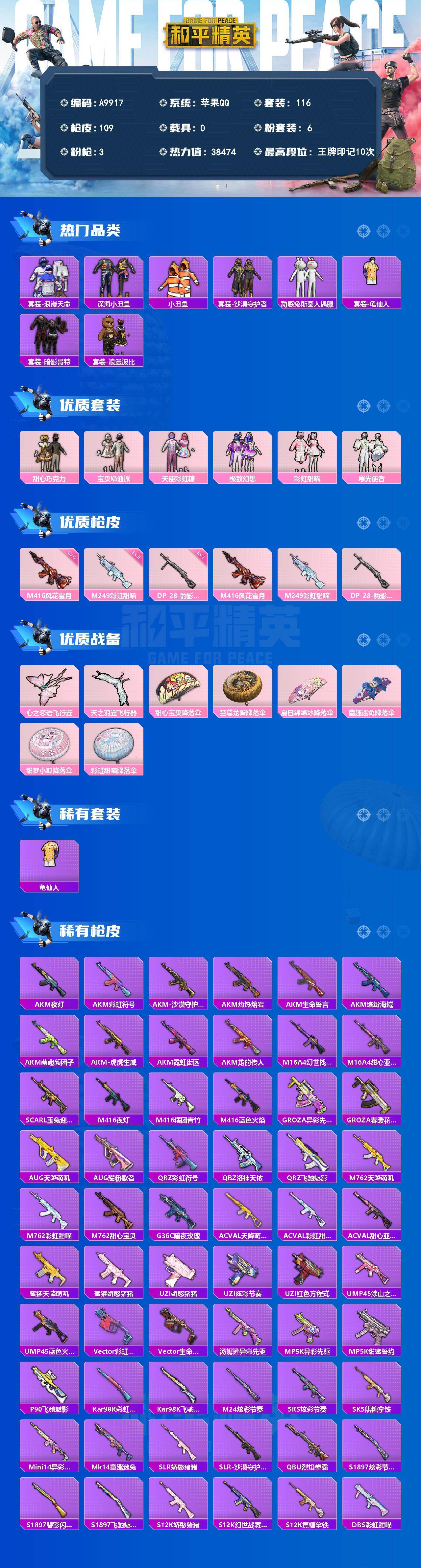 【628285】【可二次】【苹果QQ】龟仙人 童趣迷兔降落伞 梦起落英 心之恋语飞行翼 深海小丑鱼 浪漫波比 动感兔斯基人偶服 沙漠守护者 浪漫天命 激萌罗小黑 纯白誓言 迅捷狂鲨 甜心巧克力 极致幻想 彩虹甜喵降落伞 至尊龙雀降落伞 夏日绵绵冰降落伞 M416-风花雪月 AKM-缤纷海域 天使彩虹糖 甜心宝贝降落伞 天之羽翼飞行器 宝贝奶油派 暗影哥特 雪山精英