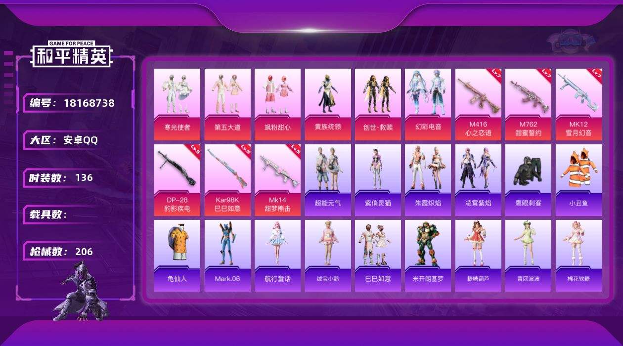 游戏区服:和平精英 / 安卓系统 / QQ账号
