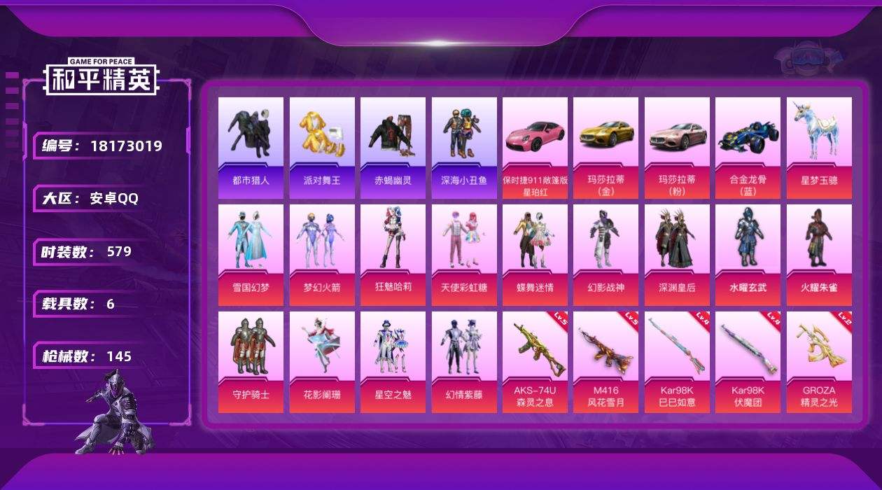 【629351】【不可二次】【安卓QQ】合金龙骨蓝色 雪国梦幻 深渊皇后 M416-五爪金龙 漫步者 都市猎人 水曜玄武 至尊龙雀飞行服 星之彼岸飞行器 赤蝎幽灵 Mini14-林间仙鹿 星空之魅 仓鼠灰灰 深海小丑鱼 花影阑珊 瑞龙福将 蝶舞迷情 浪漫天命 Kar98K-伏魔团 98K-伏魔团 纯白誓言 团圆交子 火耀朱雀 SS1特训 星梦玉骢 迅捷狂鲨 M762-瑞龙福将 齐天大圣飞行器 火