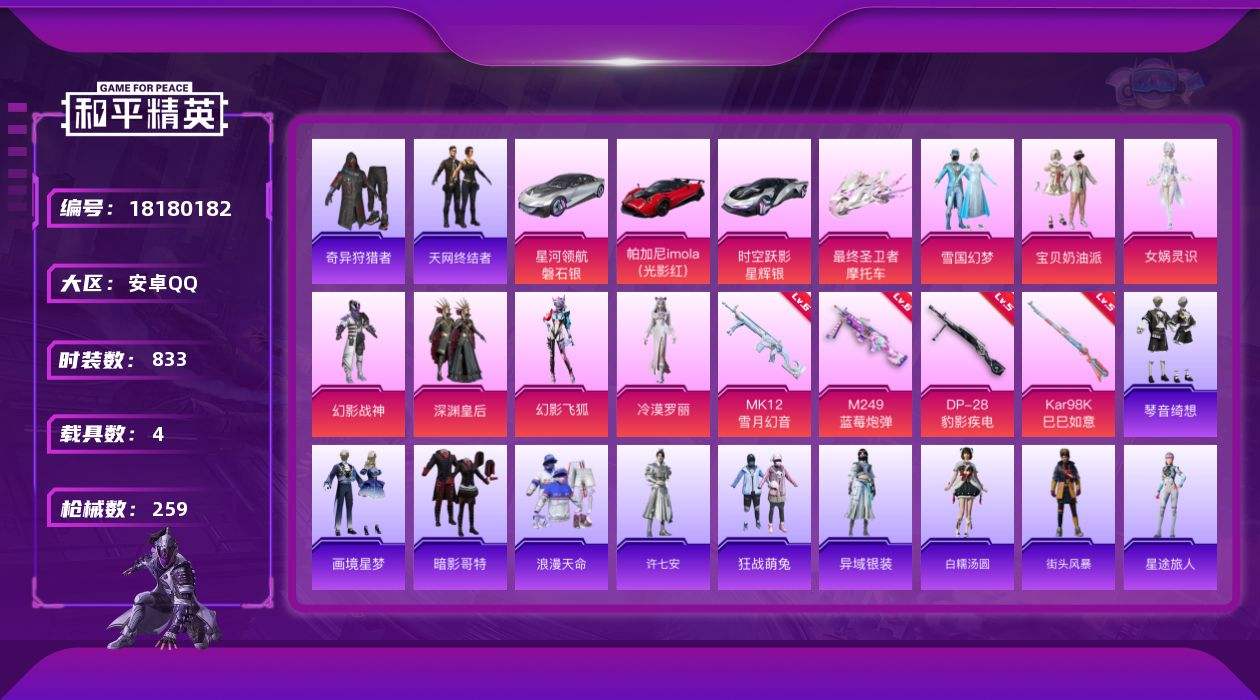【630170】【不可二次】【安卓QQ】S686-奇异狩猎者 雪国梦幻 深渊皇后 漫步者 迅捷狂鲨 奇异狩猎者 M24-奇异狩猎者 M762-瑞龙福将 极速红龙 诡面顽熊 雪国幻梦 星河领航(磐石银) M416-仓鼠灰灰 AKM-缤纷海域 M249-蓝莓炮弹 时空跃影(星辉银) 宝贝奶油派 幻影战神 瑞龙福将 浪漫天命 暗影哥特 镜光幻境飞行翼 团圆交子 AKM-奇异狩猎者
