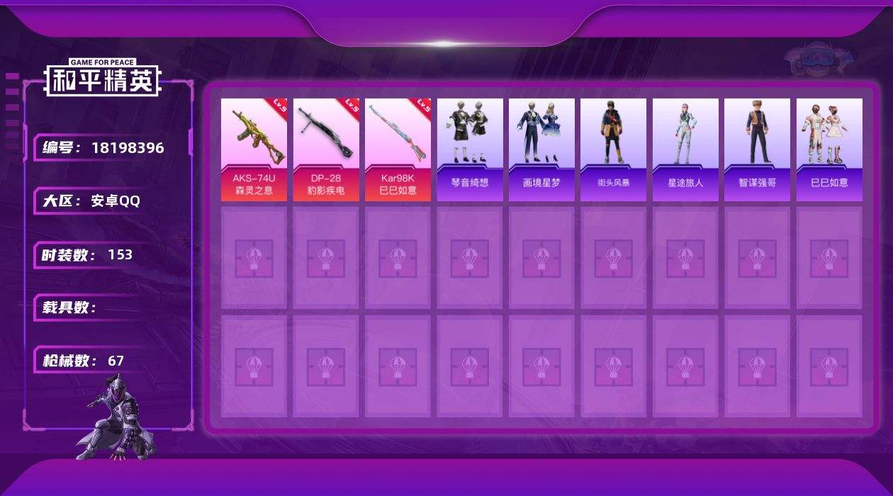 游戏区服:和平精英 / 安卓系统 / QQ账号