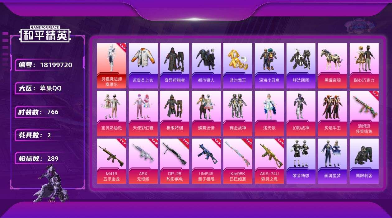 【632283】【不可二次】【苹果QQ】龟仙人 水银刺客 M416-五爪金龙 漫步者 都市猎人 M24-奇异狩猎者 洛天依 极限特训 M762-奇异狩猎者 娴静芝兰 巡查衣 UMP45-量子极限 浪漫假日 深海小丑鱼 瑞龙福将 灵猫魔法师-塞维尔 蝶舞迷情 胖达团团 团圆交子 绚金战神 奇异狩猎者 M762-瑞龙福将 甜心巧克力 春暖花开飞行器 AKM-百万伏特 天使彩虹糖 汤姆逊-怪笑疯兔 宝