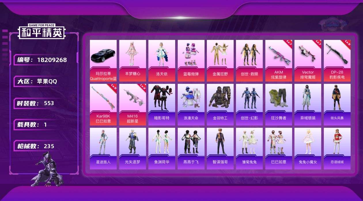 【633487】【不可二次】【苹果QQ】蓝莓炮弹 龟仙人 大橘为重 漫步者 M762-瑞龙福将 金属狂野 洛天依 狂沙舞者 金羽特工 M762-奇异狩猎者 AKM-炫紫旋律 瑞龙福将 兔兔小魔女 M416-超新星 浪漫天命 暗影哥特 团圆交子