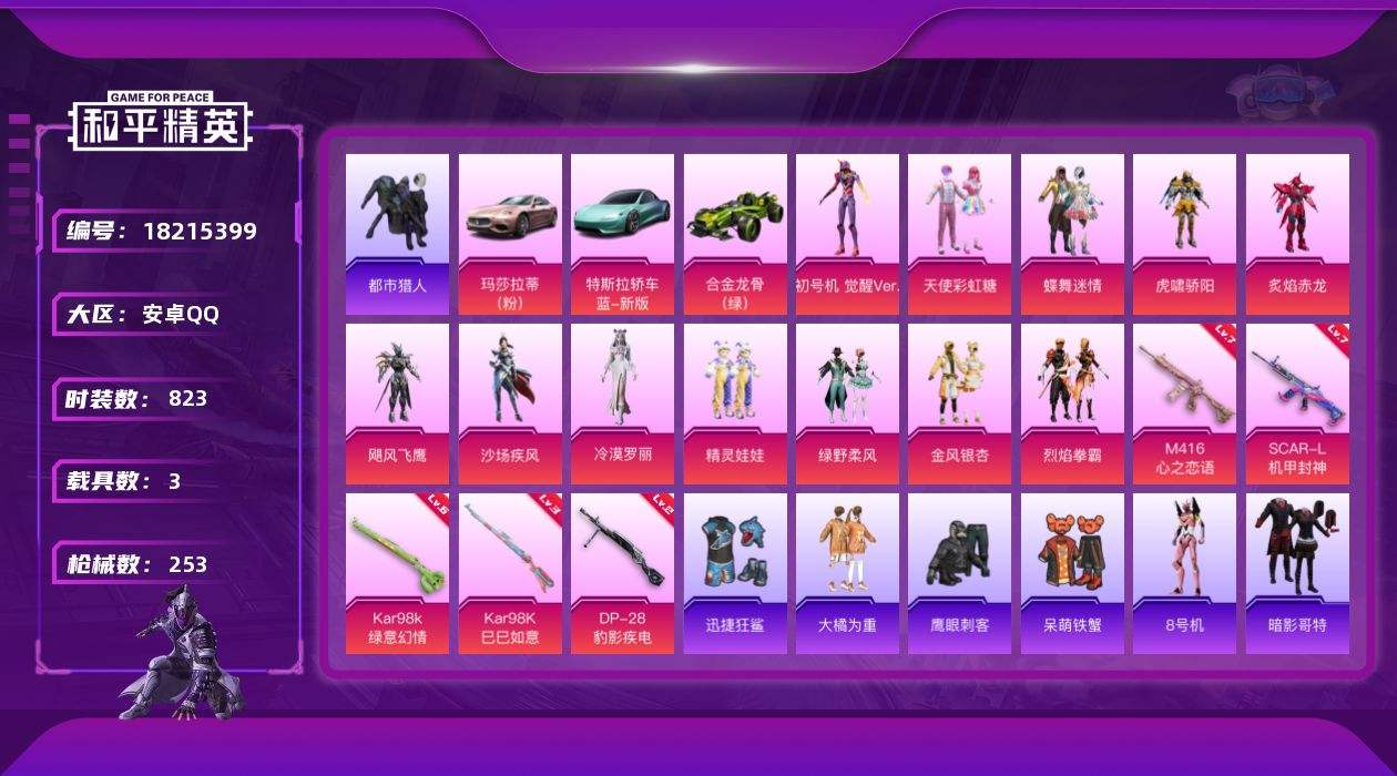 【634121】【不可二次】【安卓QQ】Kar98K-绿意幻情 龟仙人 绿野柔风 大橘为重 炙焰赤龙 漫步者 都市猎人 M24-奇异狩猎者 极速红龙 SCAR-L-机甲封神 M416-心之恋语 心之恋语飞行翼 瑞龙福将 AWM-激战未来 蝶舞迷情 特斯拉R水滴蓝 醒狮腾龙 浪漫天命 纯白誓言 团圆交子 沙场疾风 VSS-烈焰拳霸 飓风飞鹰 合金龙骨绿色 迅捷狂鲨 M762-瑞龙福将 SCAR-机