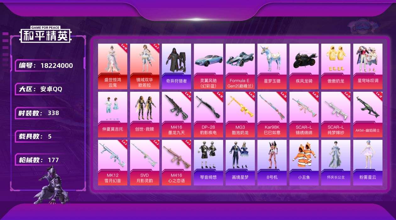 【635210】【可二次】【安卓QQ】星梦玉骢 S686-奇异狩猎者 繁龙极客飞行器 灵翼风驰(幻彩蓝) 奇异狩猎者 M24-奇异狩猎者 龙翔九天飞行器 M416-墨龙九天 M762-奇异狩猎者 镜域双华-欧若拉 SCAR-L-锦绣绵绵 Formula E Gen2(兰) 盛世惊鸿-云鸾 M416-心之恋语 AKM-缤纷海域 SCAR-L-纯梦嫁纱 夜幕颂歌飞行器 MG3-酷泡奶龙 AKM-奇异