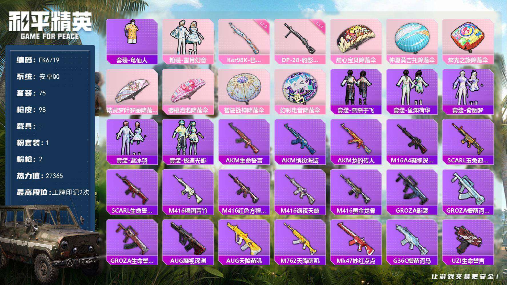 游戏区服:和平精英 / 安卓系统 / QQ账号