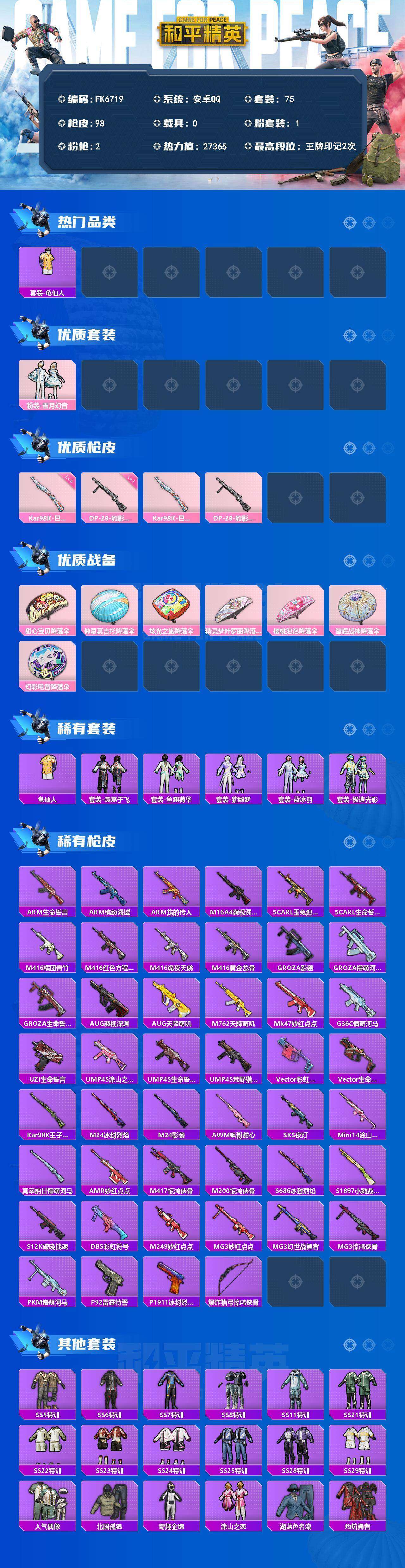 【636230】【不可二次】【安卓QQ】龟仙人 霓虹街区降落伞 仲夏莫吉托降落伞 精灵梦叶罗丽降落伞 夏日倾情降落伞 阳光火鸡降落伞 和平先锋降落伞 海域冒险降落伞 冰封烈焰降落伞 都市猎人降落伞 钢铁雄心降落伞 时之沙漏降落伞 马戏团糖果降落伞 化学天才降落伞 炫光之旅降落伞 AKM-缤纷海域 甜心宝贝降落伞 蓝海之火降落伞 放飞梦想降落伞 M416-黄金龙骨 雪山精英