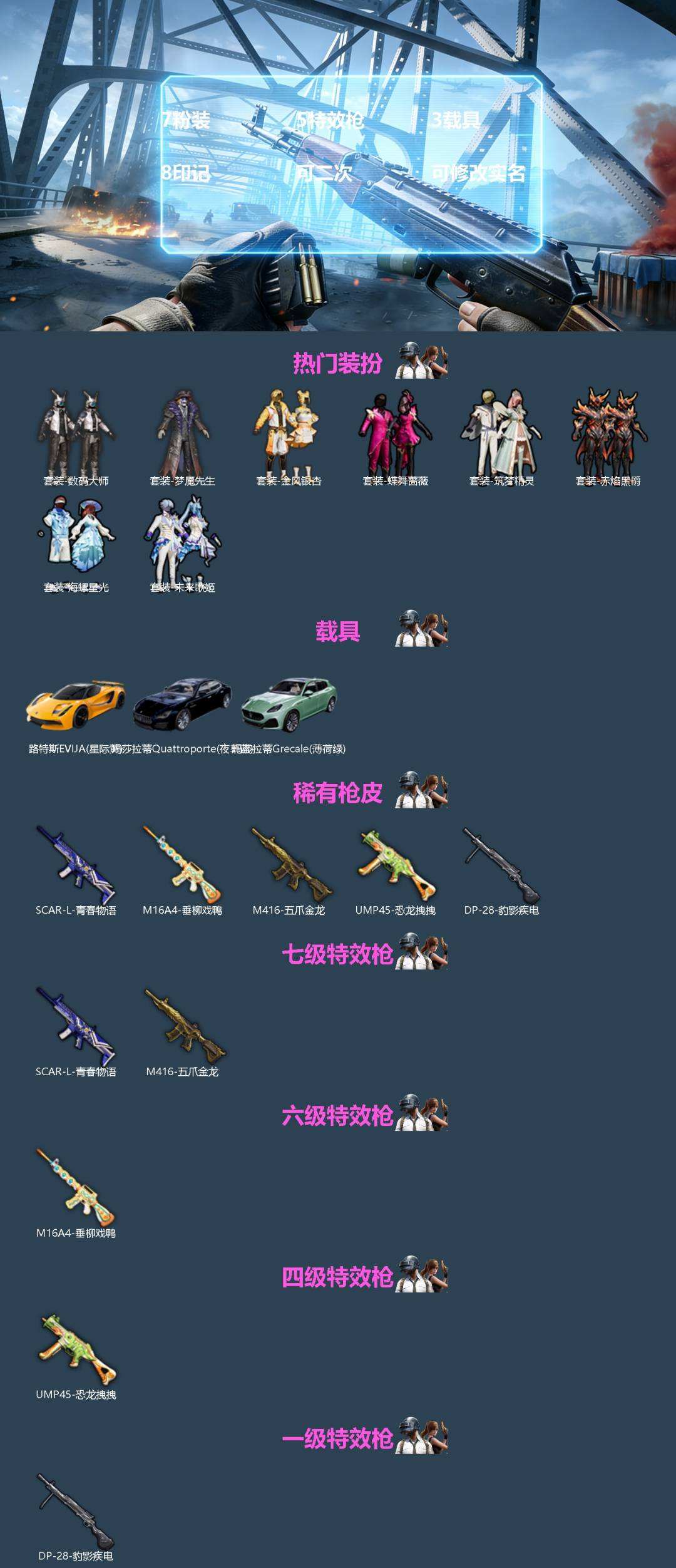 【637995】【可二次】【苹果QQ】龟仙人 梦幻火箭降落伞 M416-五爪金龙 路特斯EV黄色 洛神天依降落伞 香水柠檬降落伞 UMP45-恐龙拽拽 豚鼠丹丹 赤焰黑爵 莲影清波降落伞 蝶舞蔷薇 繁花小夜曲降落伞 瑞龙福将 神奈川冲浪里 伏魔团降落伞 纯白誓言 团圆交子 飒粉甜心降落伞 暗夜契约 金风银杏 摩登艾咪 至尊龙雀降落伞 筑梦精灵降落伞 粉红小猪 数码大师 幻影公爵 SCAR-L-青