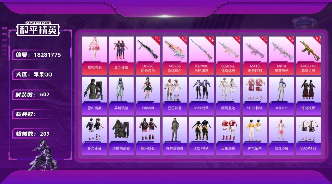 游戏区服:和平精英 / 苹果系统 / QQ帐号