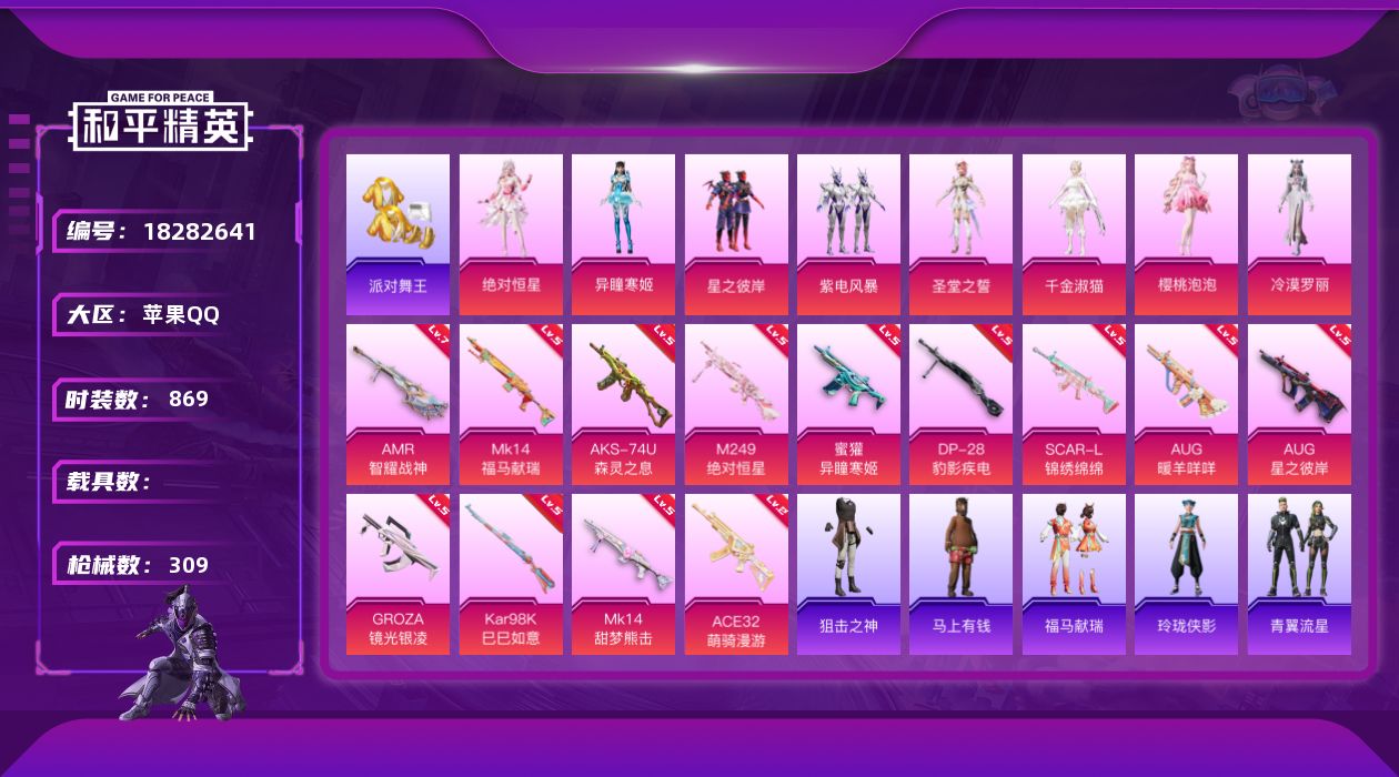 【642591】【可二次】【苹果QQ】紫电风暴 软萌银虎 星之彼岸 派对舞王 AUG-星之彼岸 狂沙舞者 极速红龙 激萌罗小黑