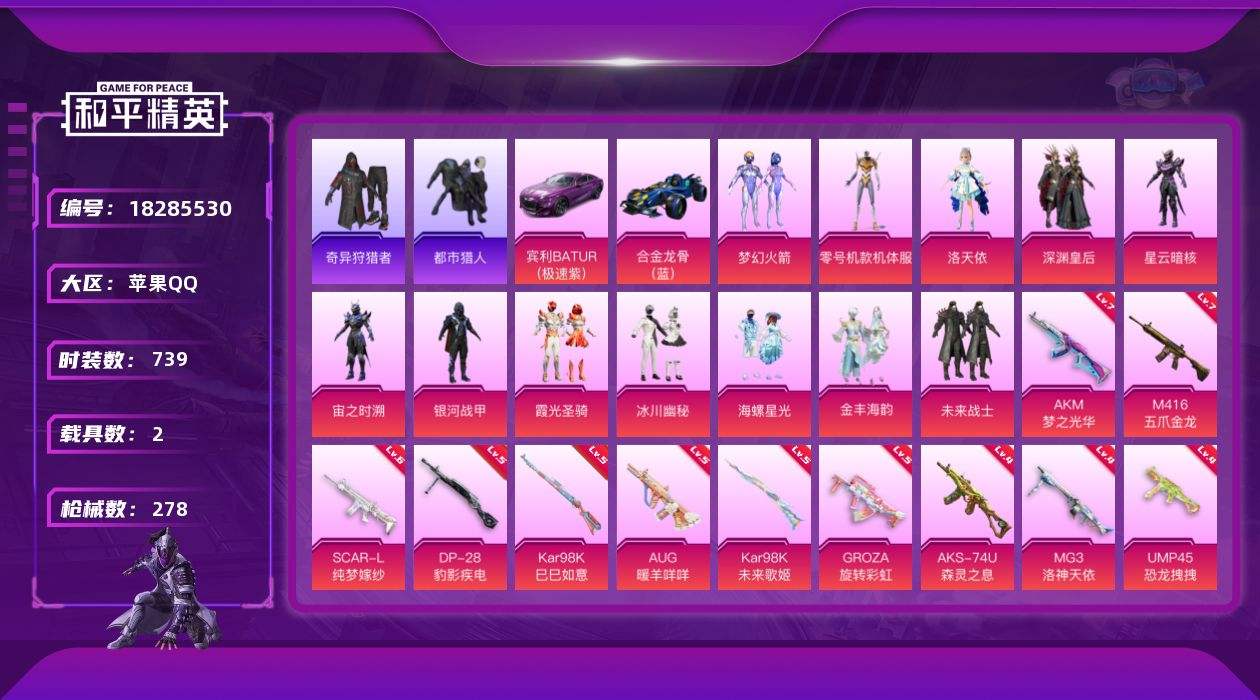 【643038】【不可二次】【苹果QQ】合金龙骨蓝色 S686-奇异狩猎者 深渊皇后 M416-五爪金龙 漫步者 都市猎人 M24-奇异狩猎者 东方飞龙 洛天依 银河战甲 西部牛仔 UMP45-恐龙拽拽 豚鼠丹丹 Kar98k-未来歌姬 炎氏战神飞行翼 M762-奇异狩猎者 SCAR-L-万古烈焰 太空嘟嘟飞行器 黄螳螂 M416-黄金龙骨 GROZA-旋转彩虹 浪漫天命 梦幻火箭飞行器 AWM