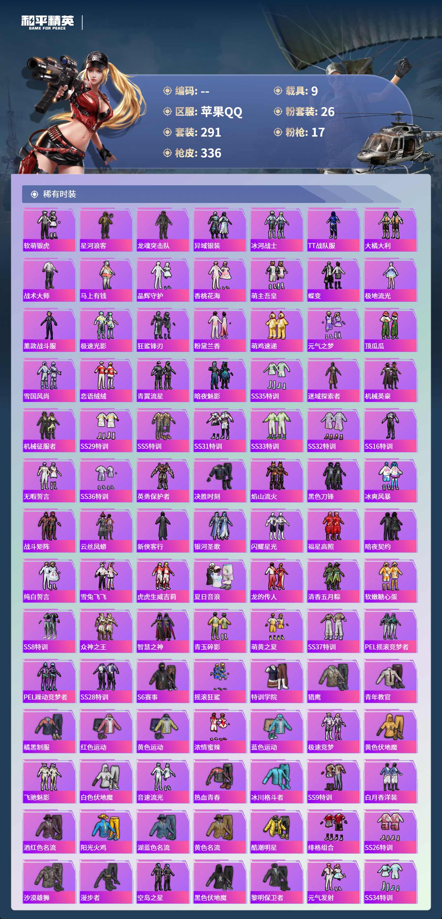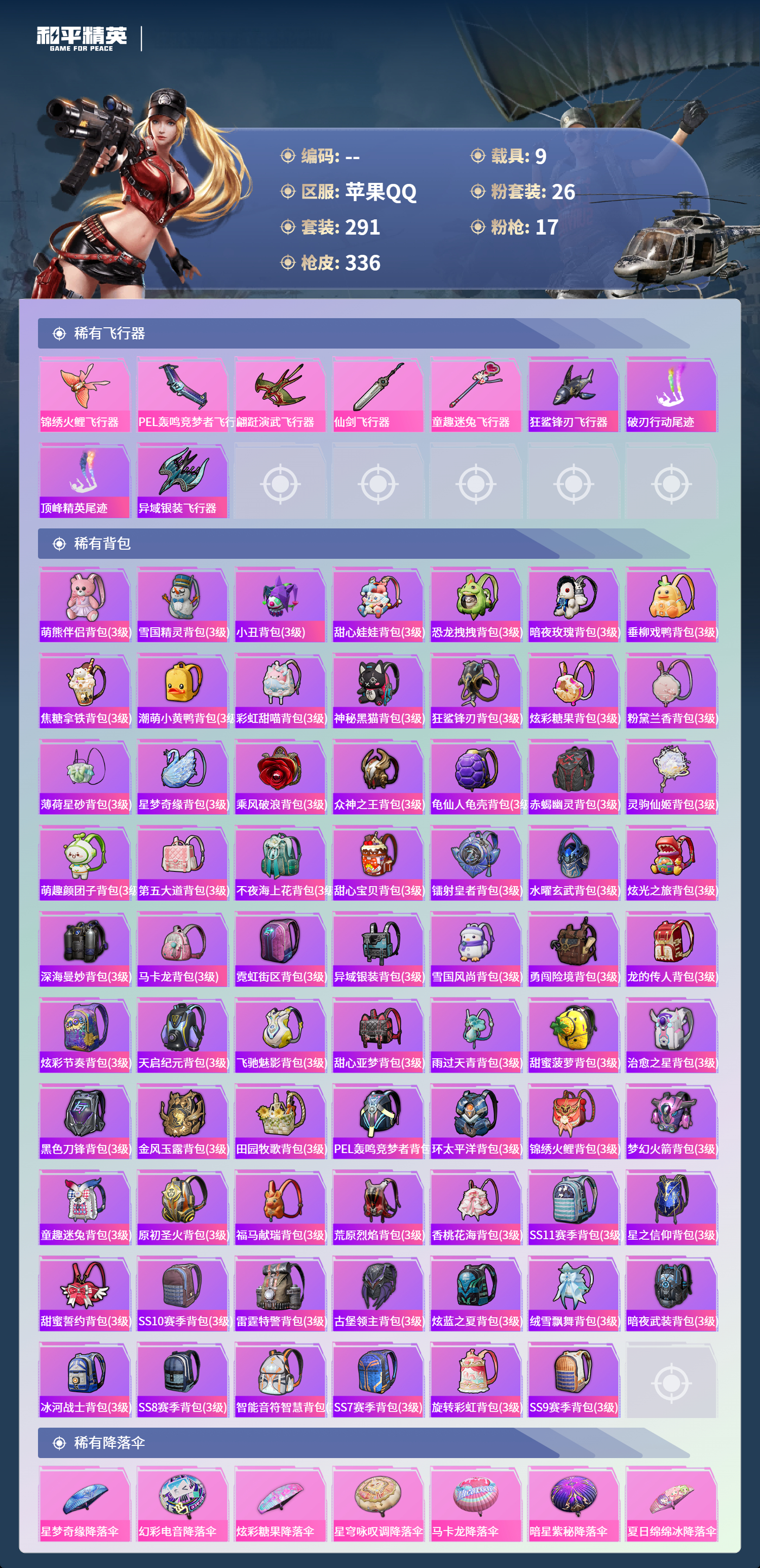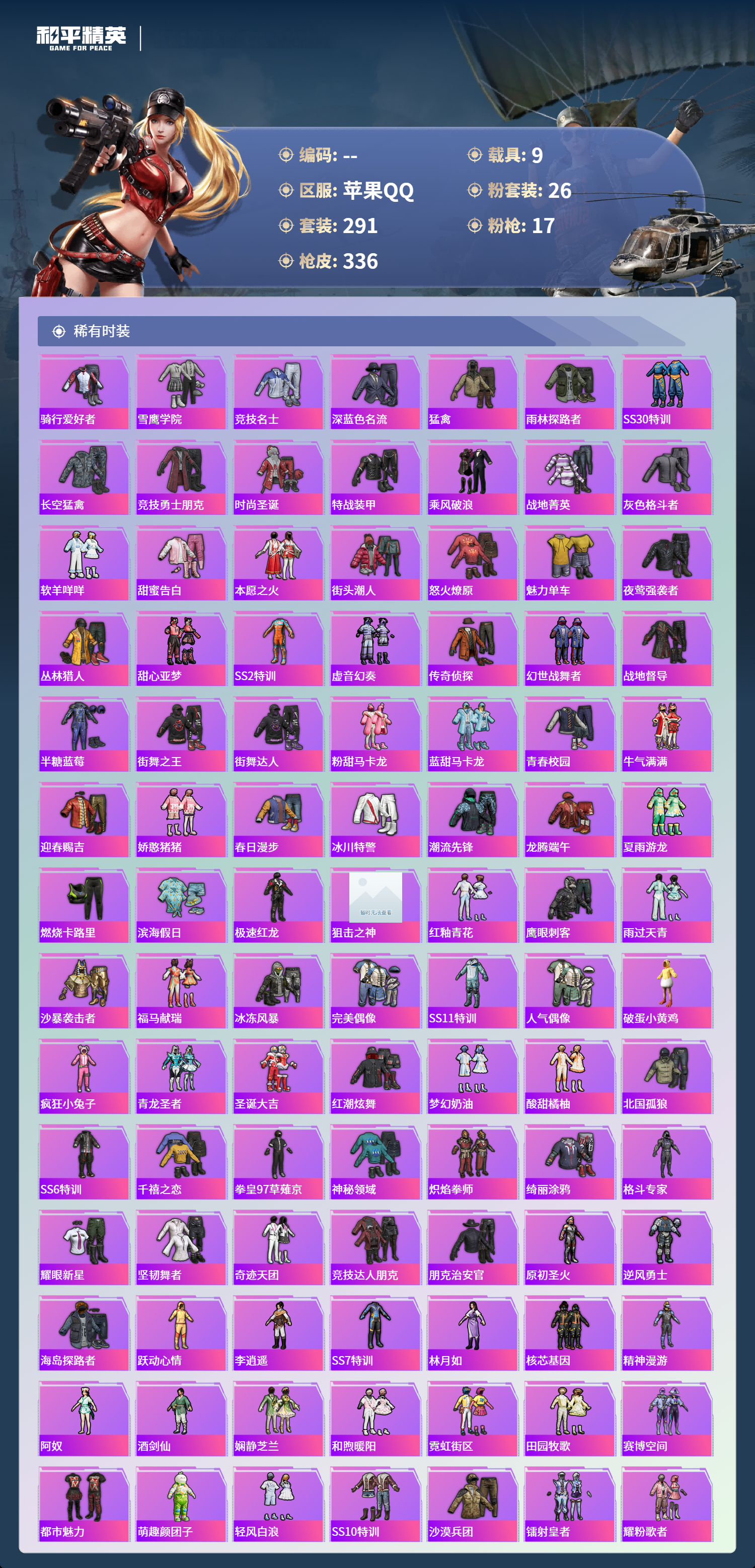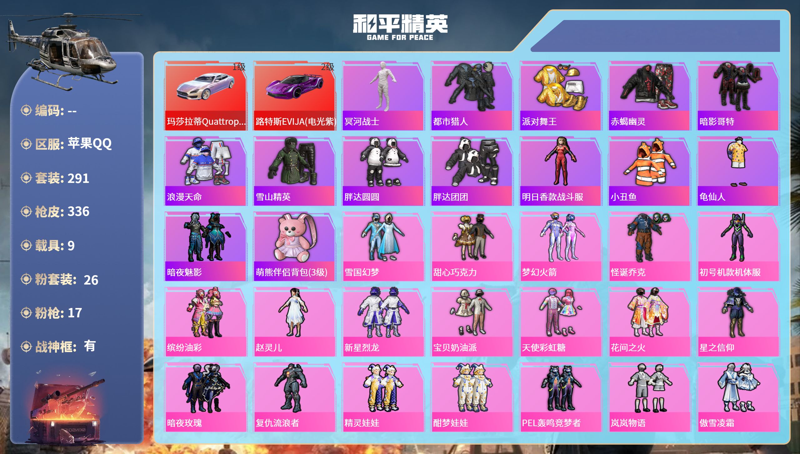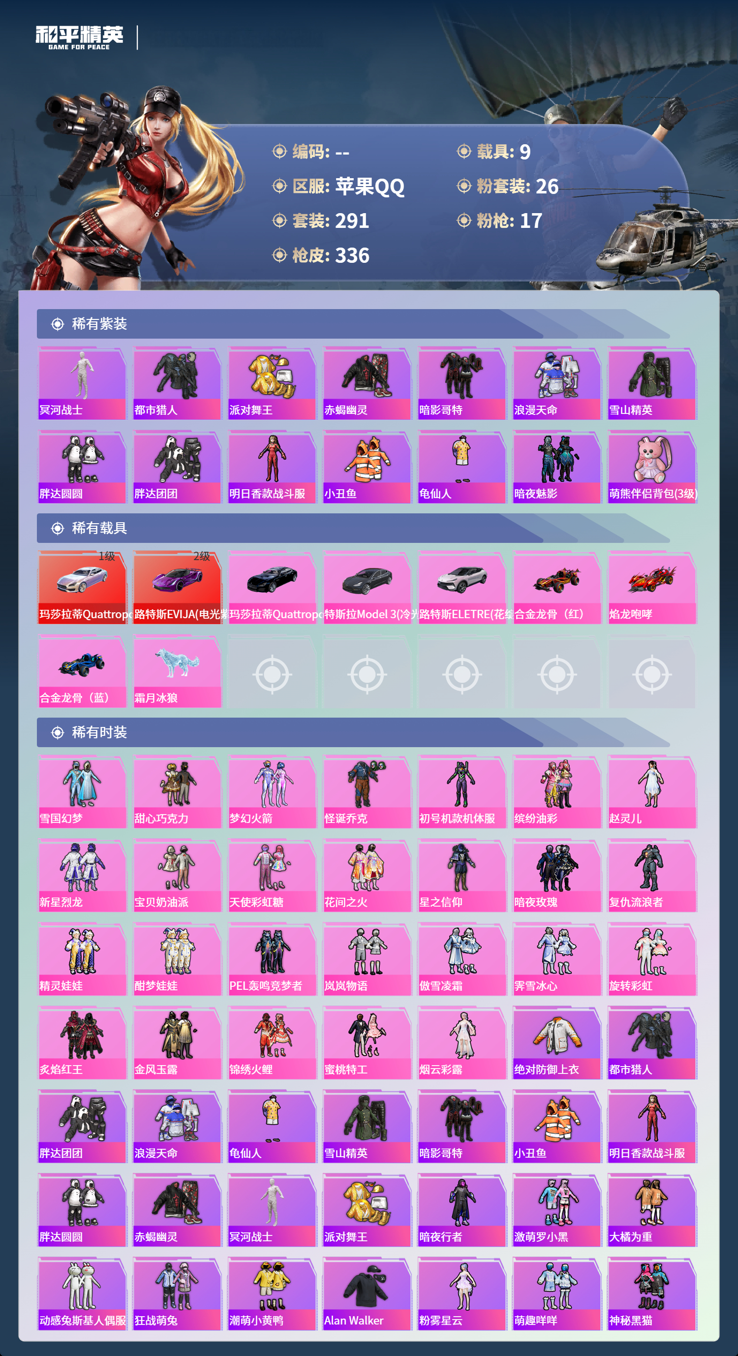 【645363】【不可二次】【苹果QQ】合金龙骨蓝色 路特斯EV紫色 龟仙人 焰龙咆哮 大橘为重 漫步者 花间之火 都市猎人 娴静芝兰 AUG-星梦奇缘 M416-暖熊萌萌 M416-心之恋语 缤纷油彩 SCAR-童趣迷兔 GROZA-旋转彩虹 Kar98K-伏魔团 AKM-甜心宝贝 纯白誓言 AKM-奇异狩猎者 星之信仰 SS1特训 合金龙骨红色 怪诞乔克 M762-瑞龙福将 潮萌小黄鸭 黑色