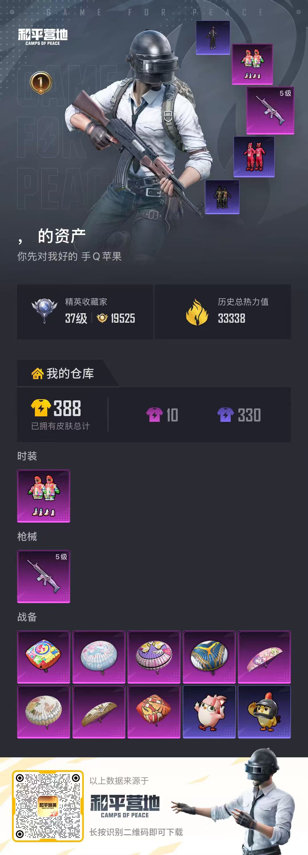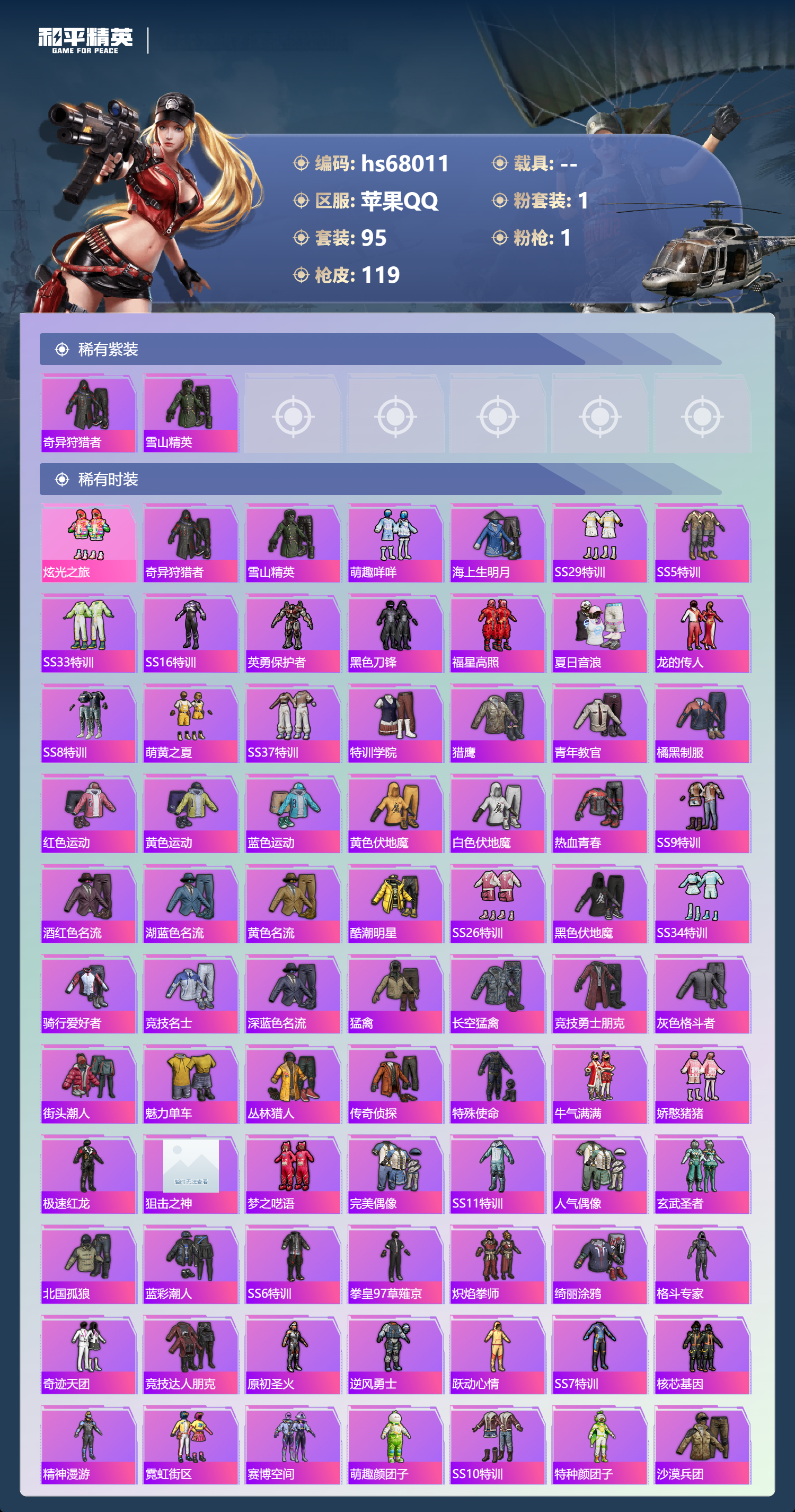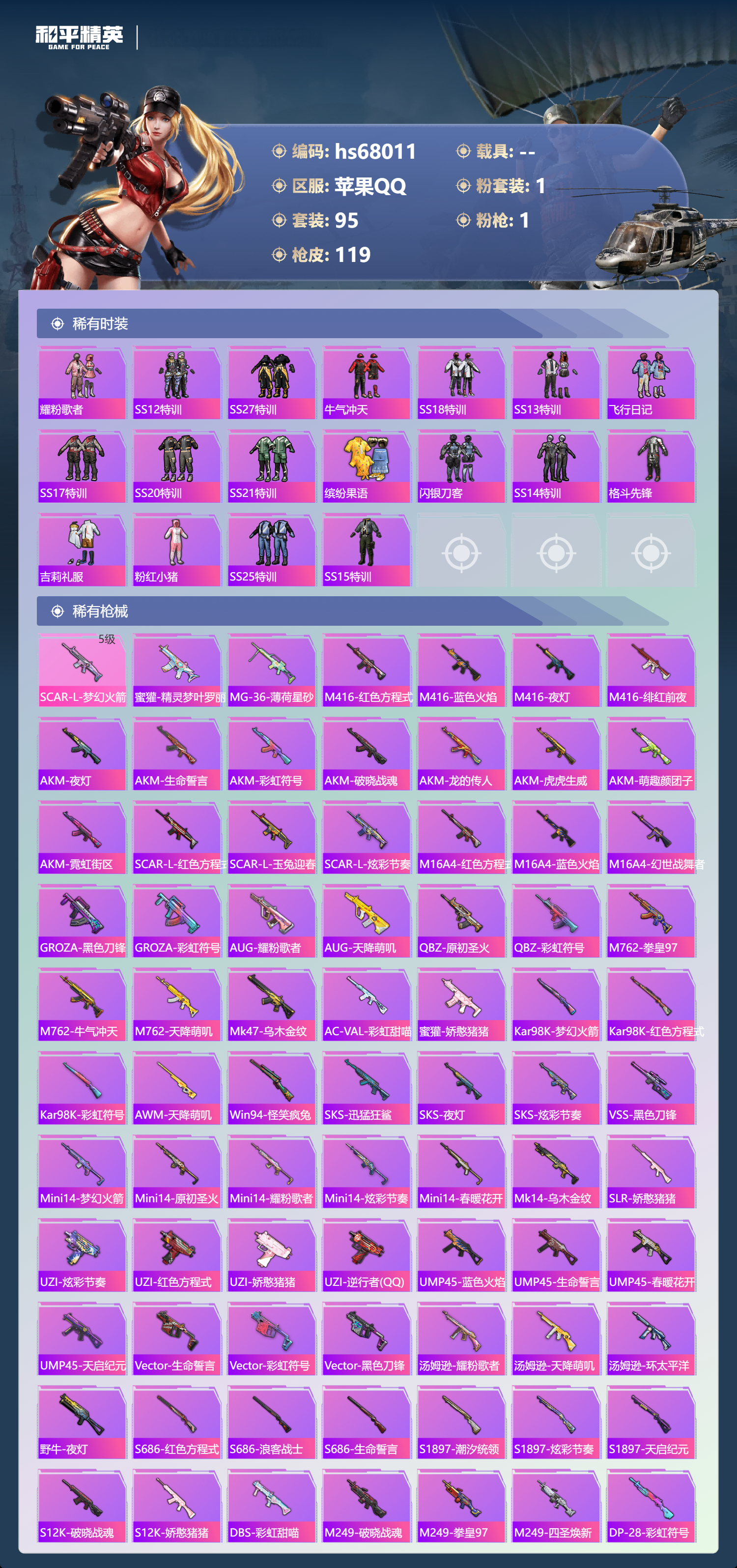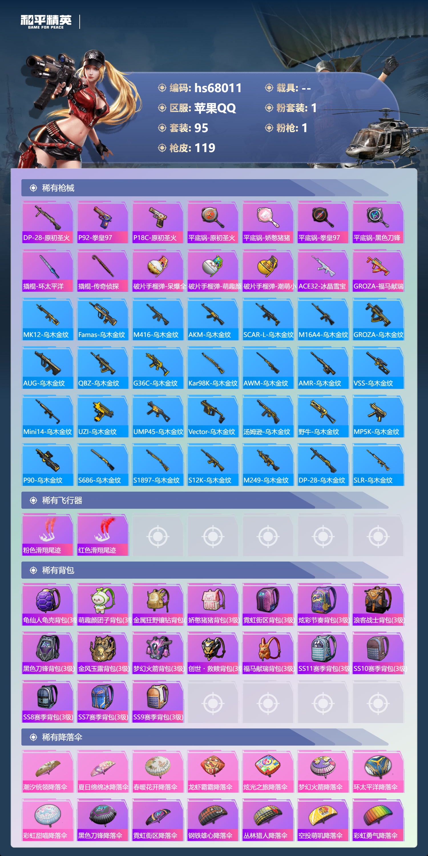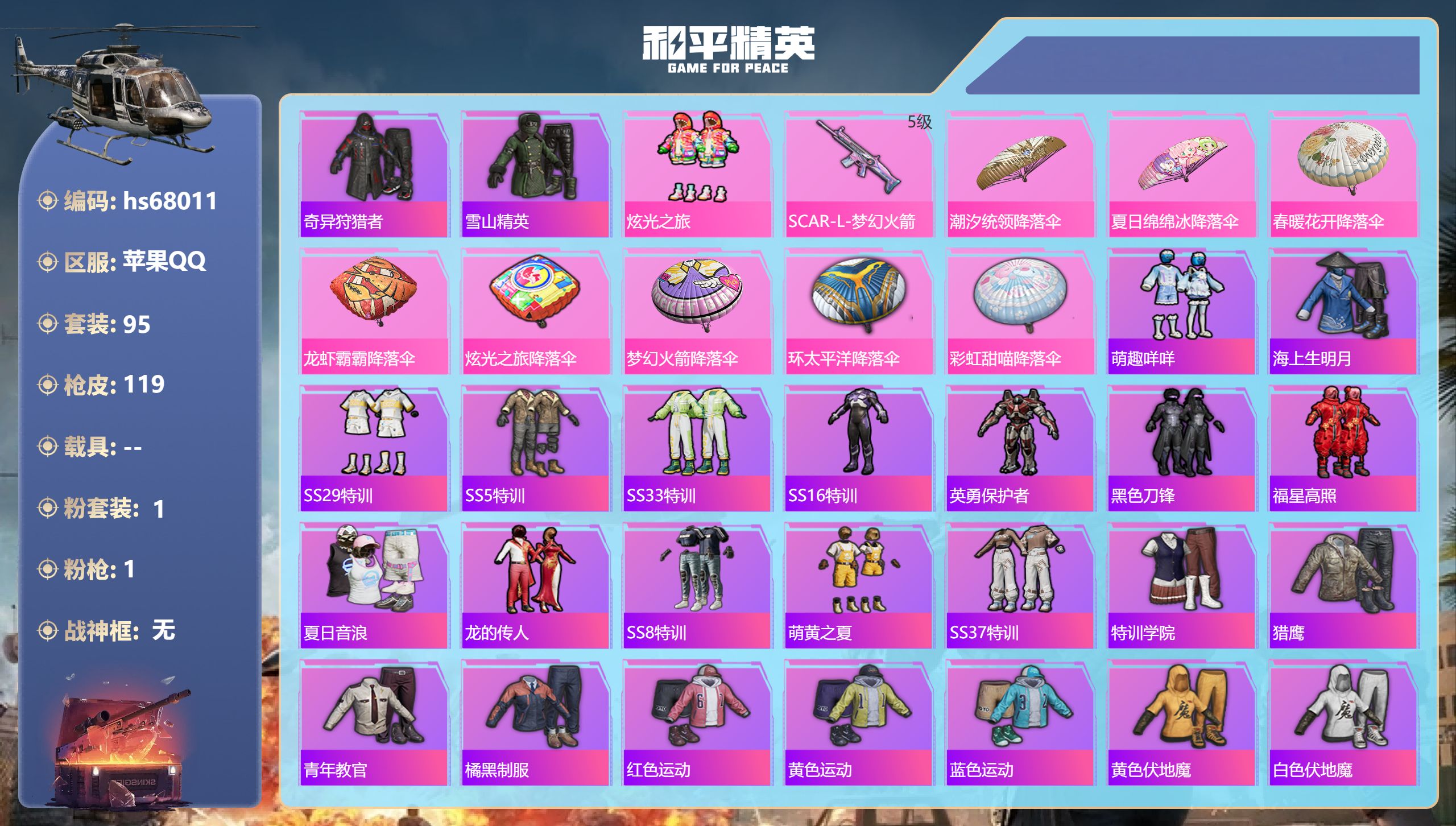 游戏区服:和平精英 / 苹果系统 / QQ帐号