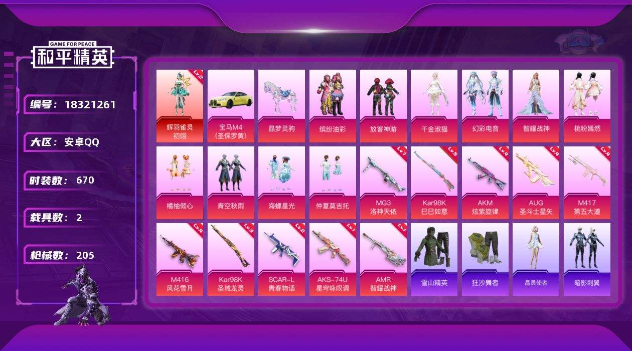 游戏区服:和平精英 / 安卓系统 / QQ账号