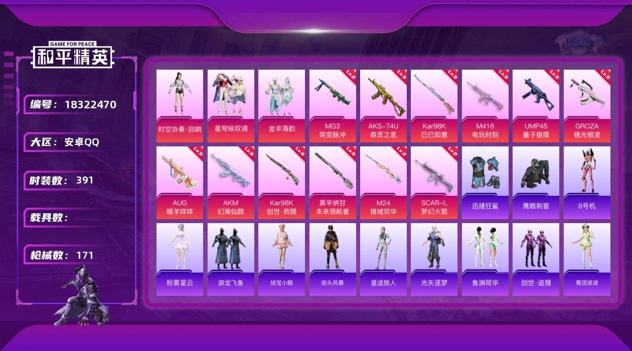 【648031】【不可二次】【安卓QQ】M416-电玩时刻 SCAR-L-梦幻火箭 龟仙人 M24-镜域双华 暗夜之虎 UMP45-量子极限 MG3-突变脉冲 童话森林 迅捷狂鲨 SCAR-L梦幻火箭 莫辛纳甘-未来领航者 忍者信条