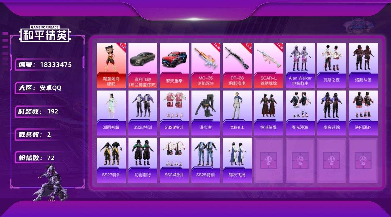 游戏区服:和平精英 / 安卓系统 / QQ账号