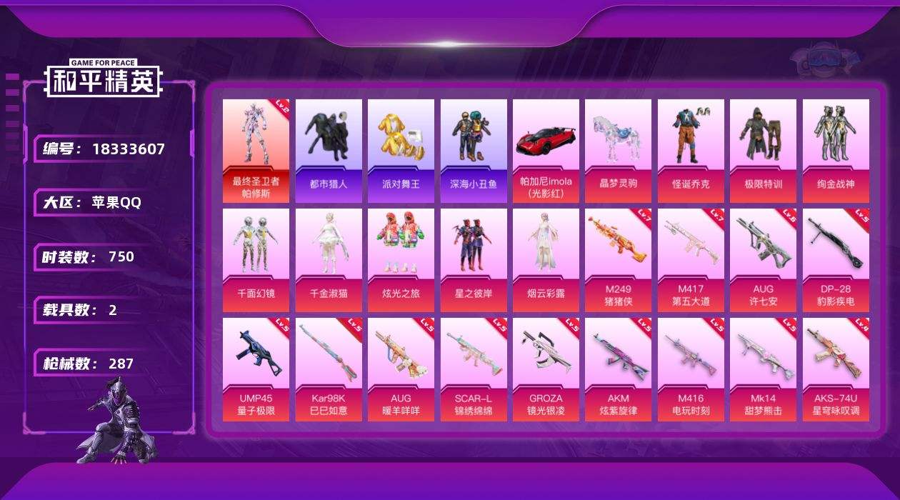 【649013】【不可二次】【苹果QQ】龟仙人 水银刺客 漫步者 都市猎人 极限特训 极速红龙 忍者信条 M416-电玩时刻 UMP45-量子极限 星之彼岸 深海小丑鱼 激萌小黄鸭 浪漫天命 软萌银虎 红熊茄茄 绚金战神 怪诞乔克 齐天大圣飞行器 潮萌小黄鸭 M417射手步枪 狂沙舞者 SCAR-L-锦绣绵绵 AKM-炫紫旋律 暗夜之虎 M249-猪猪侠 派对舞王 星夜魔法师飞行翼 M417-第