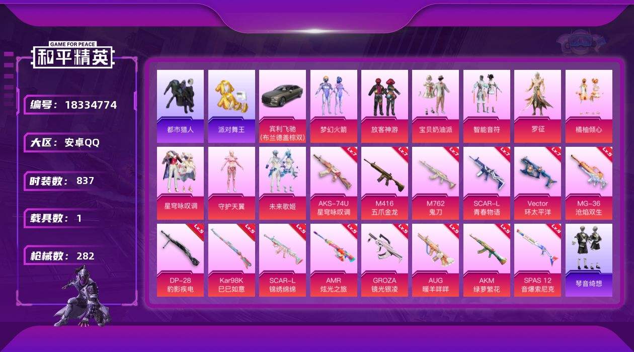 【649125】【可二次】【安卓QQ】龟仙人 AKM-绿萝繁花 M416-五爪金龙 漫步者 都市猎人 SPAS-12-音爆索尼克 极速红龙 萌酷奶龙飞行器 放客神游 GROZA-林间仙鹿 浪漫假日 瑞龙福将 AMR-炫光之旅 智能音符 浪漫天命 梦幻火箭飞行器 团圆交子 M762-瑞龙福将 Vector-环太平洋 金羽特工 SCAR-L-锦绣绵绵 梦幻火箭 宝贝奶油派 派对舞王 SCAR-L-青