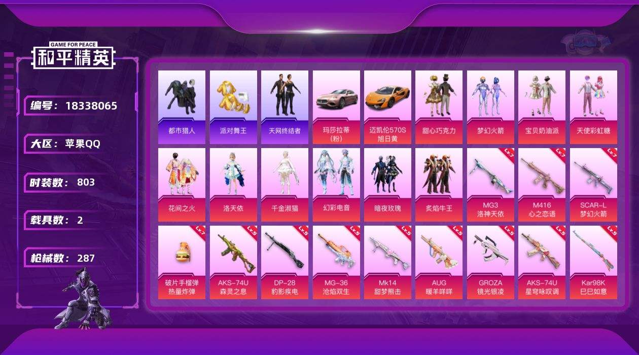 【649520】【可二次】【苹果QQ】迈凯伦570S 旭日黄 漫步者 花间之火 都市猎人 洛天依 忍者信条 M416-心之恋语 瑞龙福将 浪漫天命 纯白誓言 团圆交子 SCAR-L-梦幻火箭 M762-瑞龙福将 齐天大圣飞行器 SCAR-L梦幻火箭 MG3-洛神天依 甜心巧克力 M416-风花雪月 梦幻火箭 暗夜玫瑰 AKM-百万伏特 天使彩虹糖 粉红小猪 宝贝奶油派 玛莎拉蒂粉色 派对舞王 神