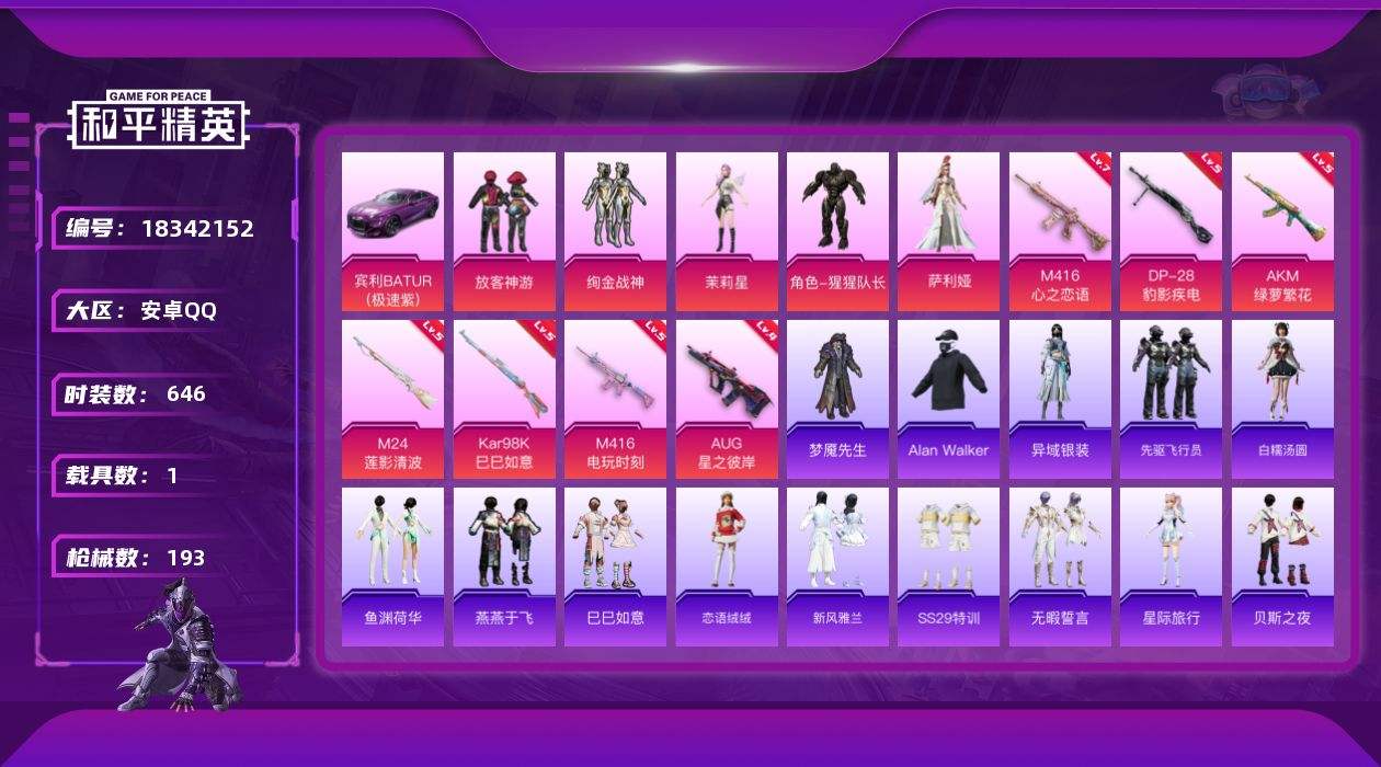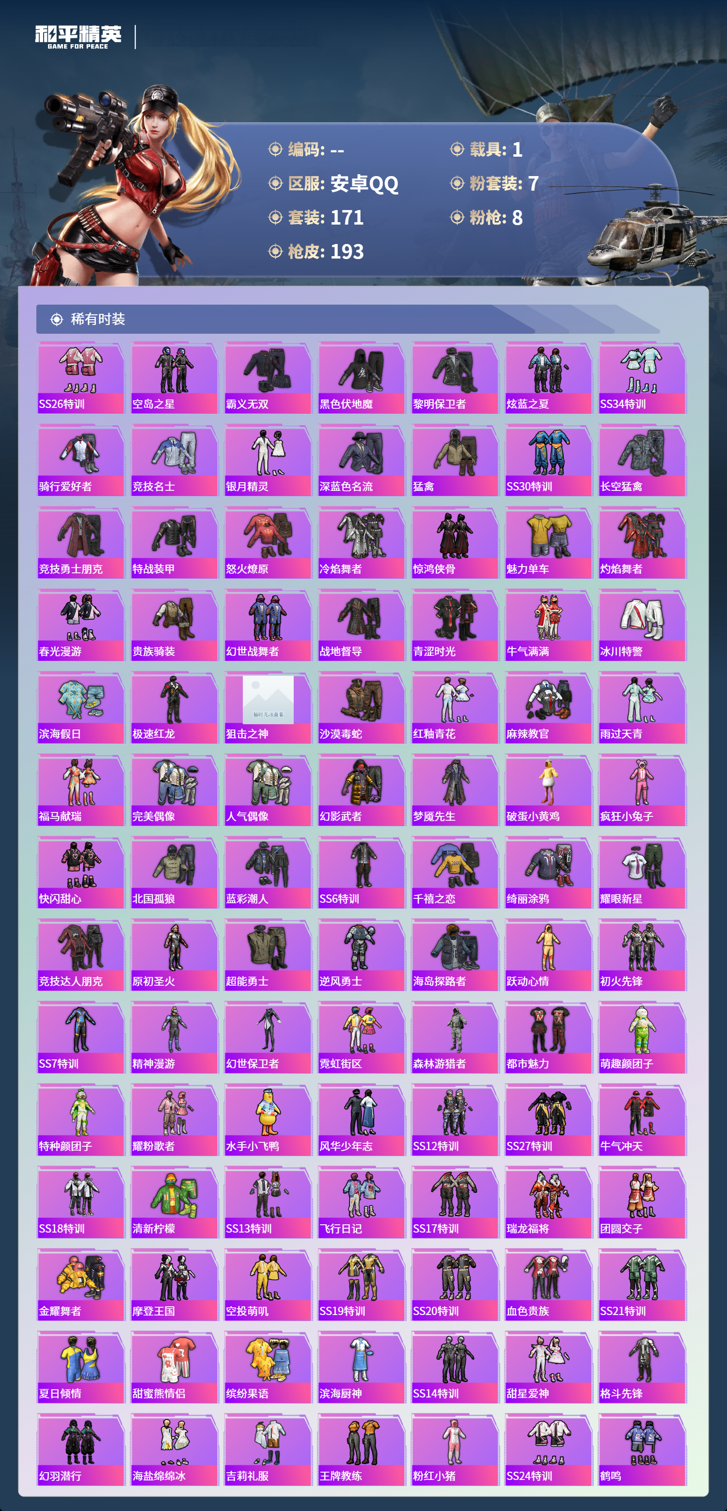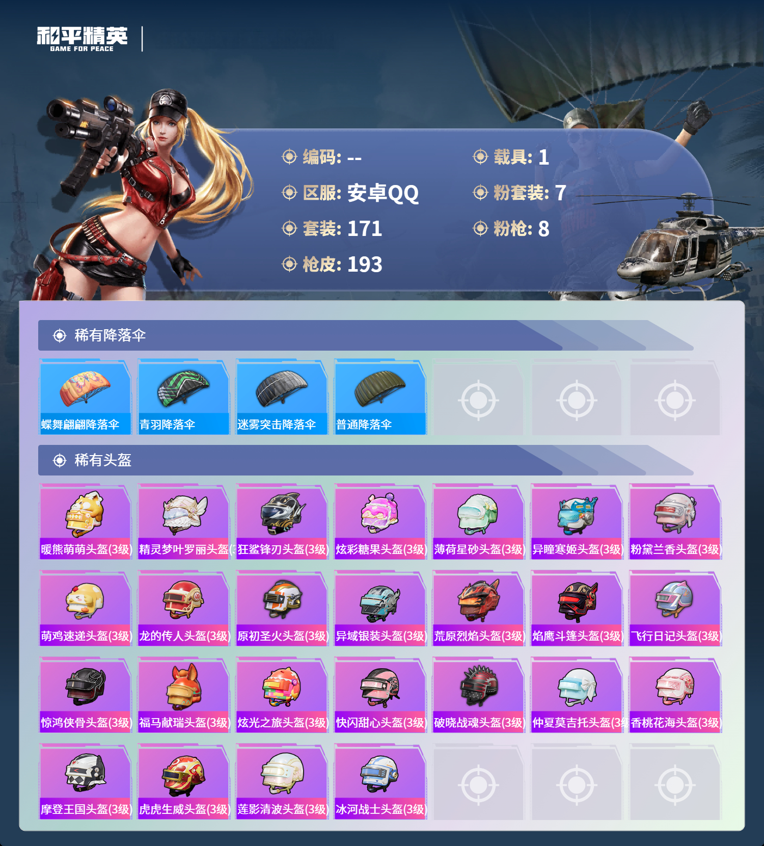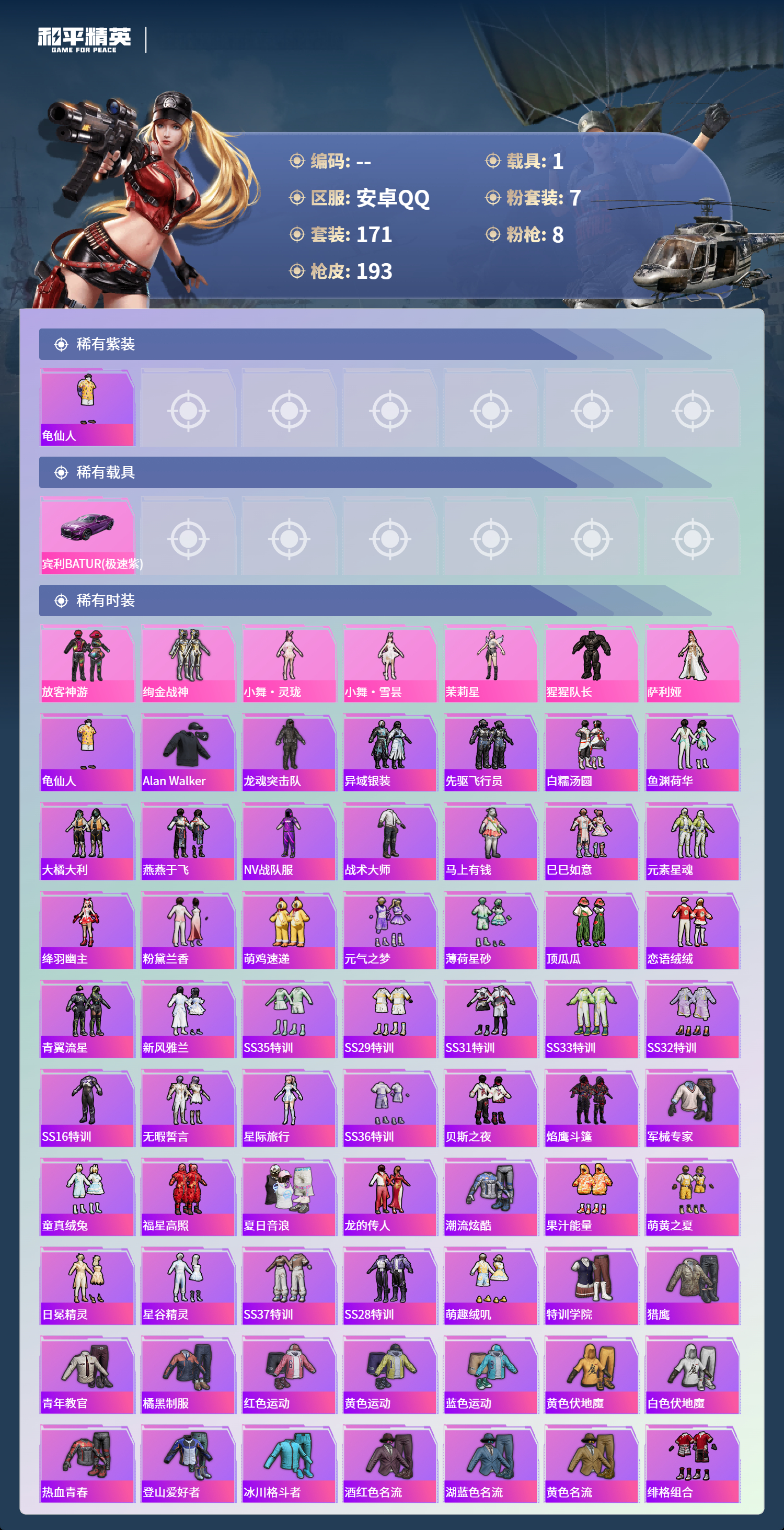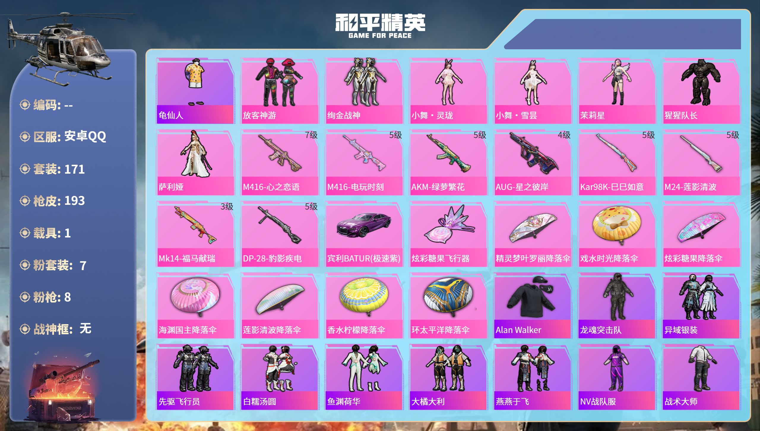 游戏区服:和平精英 / 安卓系统 / QQ账号