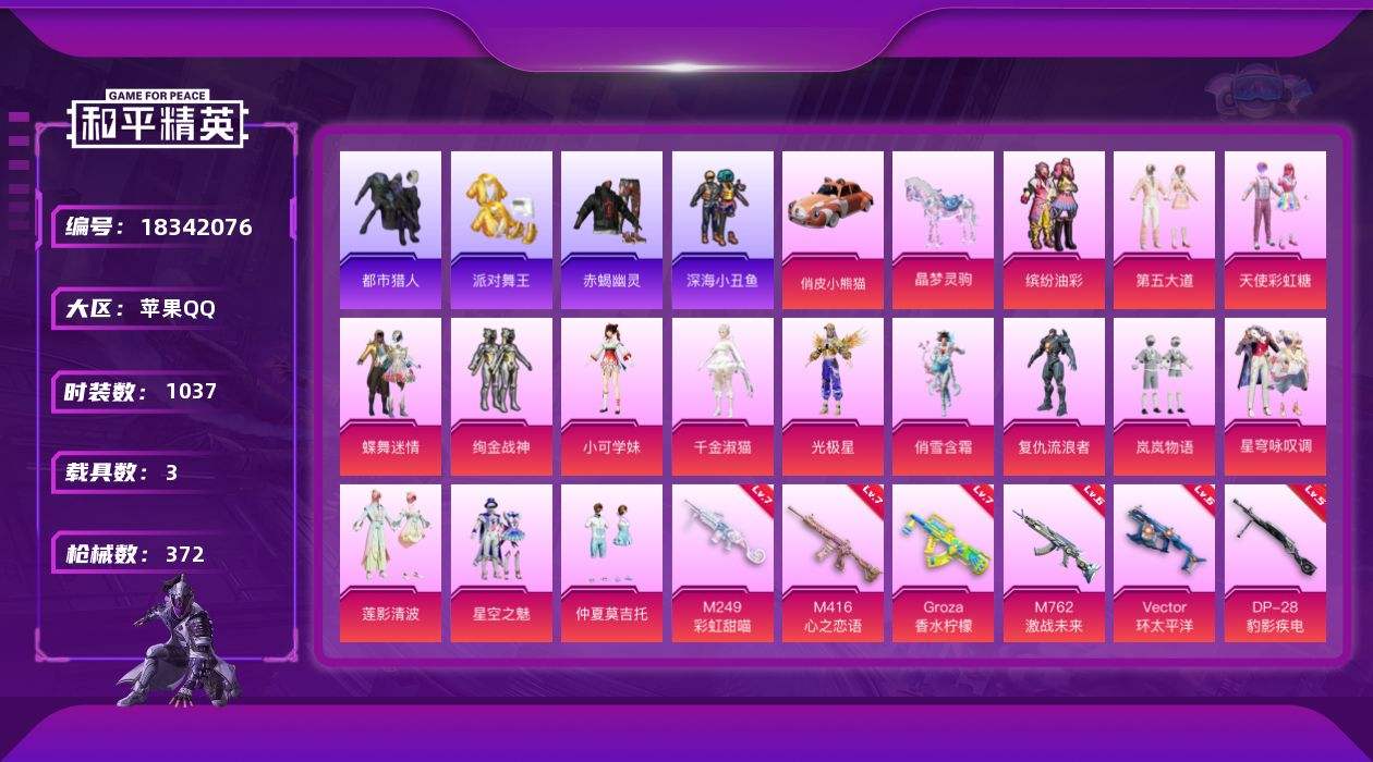 【650145】【可二次】【苹果QQ】龟仙人 水银刺客 俏雪含霜 漫步者 都市猎人 梦之光华飞行器 极速红龙 豚鼠丹丹 赤蝎幽灵 俏皮小熊猫 星空之魅 M249-彩虹甜喵 M416-心之恋语 缤纷油彩 深海小丑鱼 瑞龙福将 激萌小黄鸭 蝶舞迷情 软软马卡龙 AUG-星之彼岸 浪漫天命 AWM-黄金龙骨 团圆交子 AKM-奇异狩猎者 红熊茄茄 绚金战神 岚岚物语 M762-激战未来 迅捷狂鲨 M7