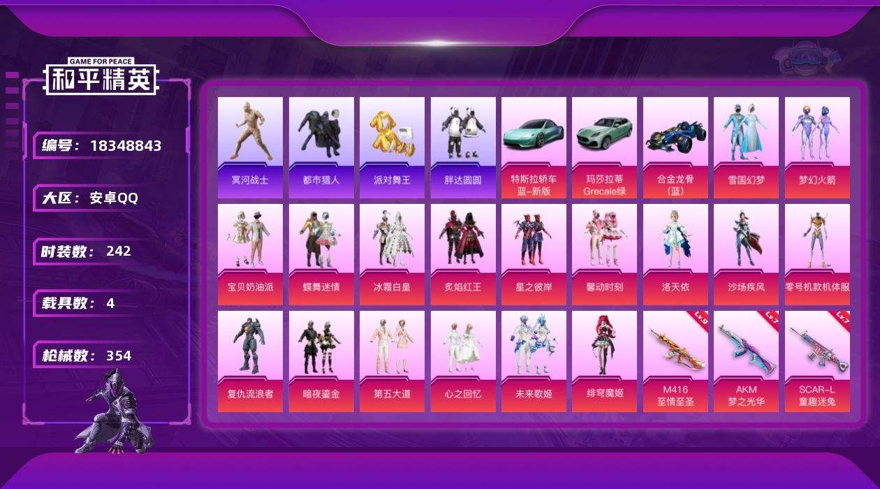 【650817】【不可二次】【安卓QQ】合金龙骨蓝色 沙场疾风 木乃伊 大橘为重 雪国梦幻 M416-五爪金龙 洛天依 M417射手步枪 梦幻火箭 AKM-梦之光华 黄螳螂 UMP45-相思残雪 宝贝奶油派 馨动时刻 SCAR-童趣迷兔 蝶舞迷情 特斯拉R水滴蓝