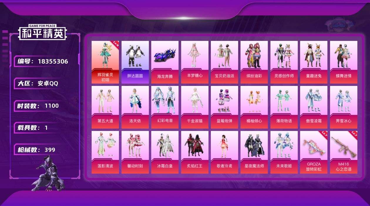 【651750】【可二次】【安卓QQ】蓝莓炮弹 龟仙人 AKM-绿萝繁花 M249-绒雪飘舞 漫步者 炙焰红王 海龙奔腾 洛天依 UMP45-恐龙拽拽 豚鼠丹丹 绒雪飘舞飞行器 M416-心之恋语 缤纷油彩 馨动时刻 SCAR-童趣迷兔 童趣迷兔 瑞龙福将 蝶舞迷情 GROZA-旋转彩虹 辉羽雀灵-初翊 醒狮腾龙 浪漫天命 梦幻火箭飞行器 胖达圆圆 团圆交子 软萌银虎 SS1特训 暗夜契约 M7
