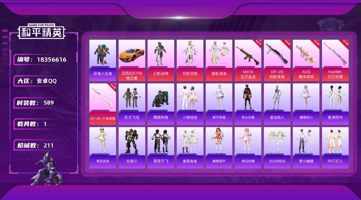 【652082】【可二次】【安卓QQ】龟仙人 迈凯伦570S 旭日黄 M416-五爪金龙 漫步者 千面幻镜飞行器 东方飞龙 极速红龙 暗夜之虎 AKM-缤纷海域 粉红小猪 深海小丑鱼 幻影战神 M416-黄金龙骨