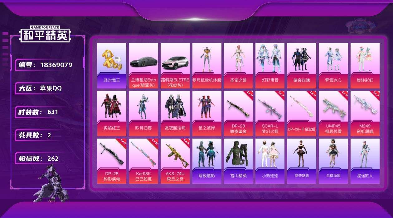 【653486】【不可二次】【苹果QQ】SCAR-L-梦幻火箭 龟仙人 炙焰红王 M762-瑞龙福将 SCAR-L梦幻火箭 兰博轿车灰色 极速红龙 M762-风花雪月 吟月归客 DP-28-暗夜鎏金 M249-彩虹甜喵 暗夜玫瑰 星之彼岸 路特斯EL灰色 黄螳螂 UMP45-相思残雪 瑞龙福将 派对舞王 星夜魔法师飞行翼 醒狮腾龙 雪山精英 团圆交子