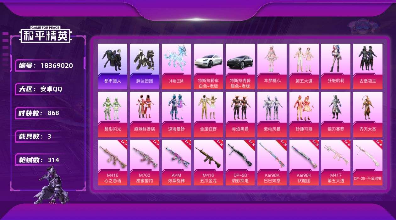 【653489】【不可二次】【安卓QQ】M762-甜蜜誓约 大橘为重 都市猎人 M249-古堡领主 不夜海上花 金属狂野 M762-奇异狩猎者 庄周梦蝶飞行器 银刃赛罗 M416-心之恋语 麻辣鲜香锅 浪漫波比 碧影闪光 醒狮腾龙 Kar98K-伏魔团 纯白誓言 AKM-奇异狩猎者 紫电风暴 特斯拉3白色 M762-瑞龙福将 齐天大圣飞行器 潮萌小黄鸭 海洋之心 M417射手步枪 狂沙舞者 金羽