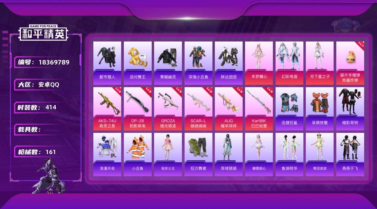 【653554】【不可二次】【安卓QQ】龟仙人 都市猎人 迅捷狂鲨 狂沙舞者 SCAR-L-锦绣绵绵 寒蝎幽灵 暗夜之虎 粉红小猪 深海小丑鱼 派对舞王 浪漫天命 暗影哥特 AWM-黄金龙骨 胖达团团