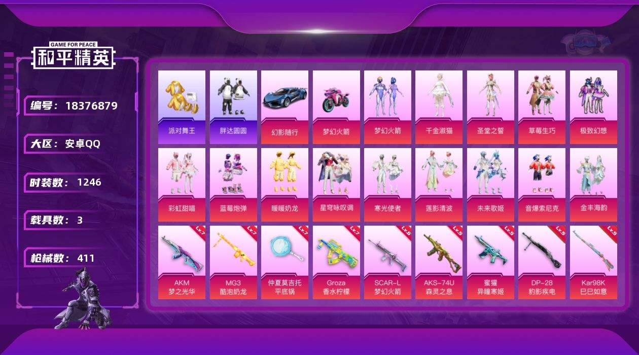 【654419】【不可二次】【安卓QQ】蓝莓炮弹 龟仙人 AKM-绿萝繁花 双人摩托梦幻火箭 Kar98K-圣光天使 M24-莲影清波 M24-奇异狩猎者 东方飞龙 西部牛仔 极速红龙 M249-彩虹甜喵 仓鼠灰灰 花傲天飞行器 幻影随行 夜幕颂歌飞行器 瑞龙福将 醒狮腾龙 浪漫天命 梦幻火箭飞行器 镜光幻境飞行翼 胖达圆圆 团圆交子 软萌银虎 SCAR-L-梦幻火箭 DP-28-圣堂之誓 M7