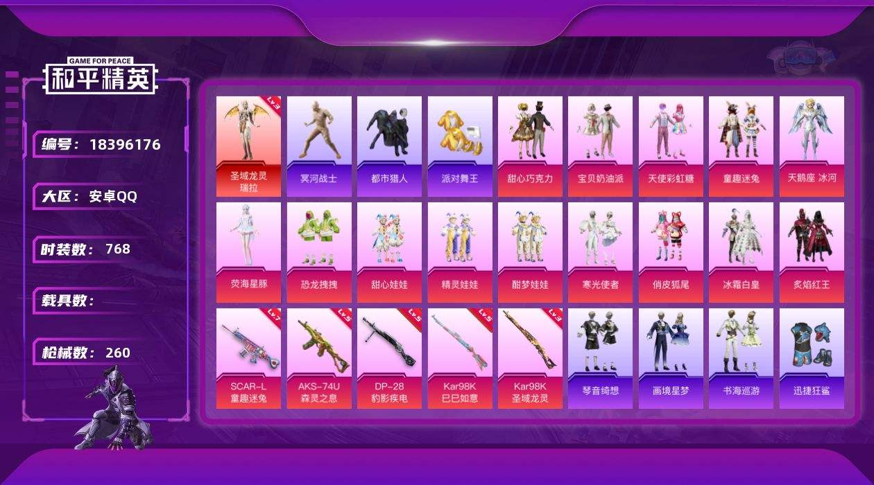 【656659】【不可二次】【安卓QQ】恐龙拽拽 木乃伊 漫步者 都市猎人 炙焰红王 极速红龙 庄周梦蝶飞行器 SCAR-童趣迷兔 童趣迷兔 瑞龙福将 激萌小黄鸭 浪漫天命 激萌罗小黑 团圆交子 AUG-PEC最牛战神 迅捷狂鲨 暗夜契约 M762-瑞龙福将 潮萌小黄鸭 甜心娃娃 酣梦娃娃 甜心巧克力 狂沙舞者 精灵娃娃 AKM-缤纷海域 圣域龙灵-瑞拉 天使彩虹糖 宝贝奶油派 派对舞王 暗影哥