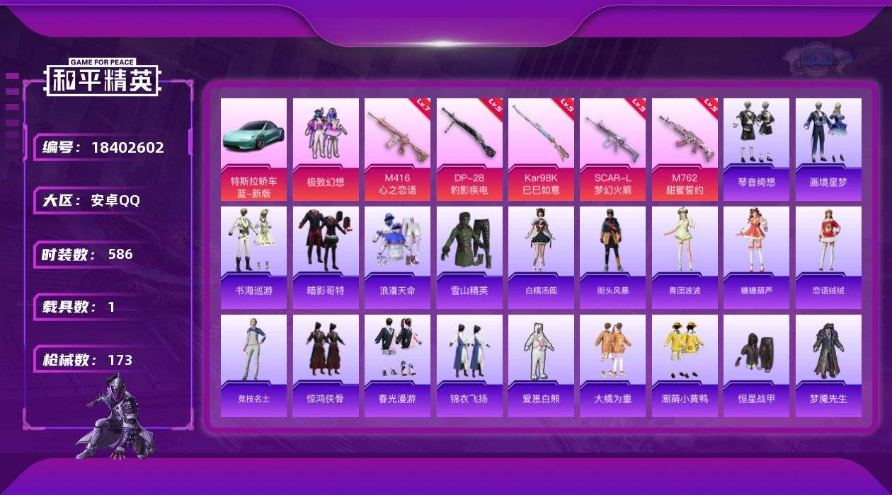 【657543】【不可二次】【安卓QQ】SCAR-L-梦幻火箭 M762-甜蜜誓约 大橘为重 暗夜契约 SCAR-L梦幻火箭 潮萌小黄鸭 机械英豪 极致幻想 极速红龙 M762甜蜜誓言 M416-仓鼠灰灰 M416-心之恋语 激萌小黄鸭 特斯拉R水滴蓝 浪漫天命 暗影哥特 雪山精英 纯白誓言