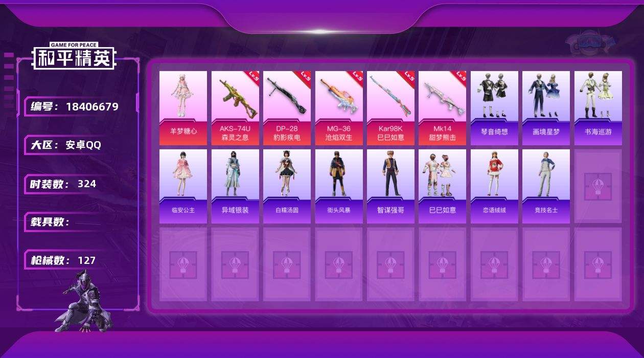 【657890】[18406679]【特价出售】安卓Q-2粉装7特效枪1热门77套装127枪皮 33168热力值 2印记 历史超级王牌7星 【2粉装】 羊梦糖心 罪夜之冕 【7特效枪】 AKS-74U-森灵之息 (5级) Kar98K-巳巳如意 (5级) MG-36-沧焰双生 (5级) DP-28-豹影疾电 (5级) Mk14-甜梦熊击 (5级) Mk14-福马献瑞 (2级) AA12-G-萌骑