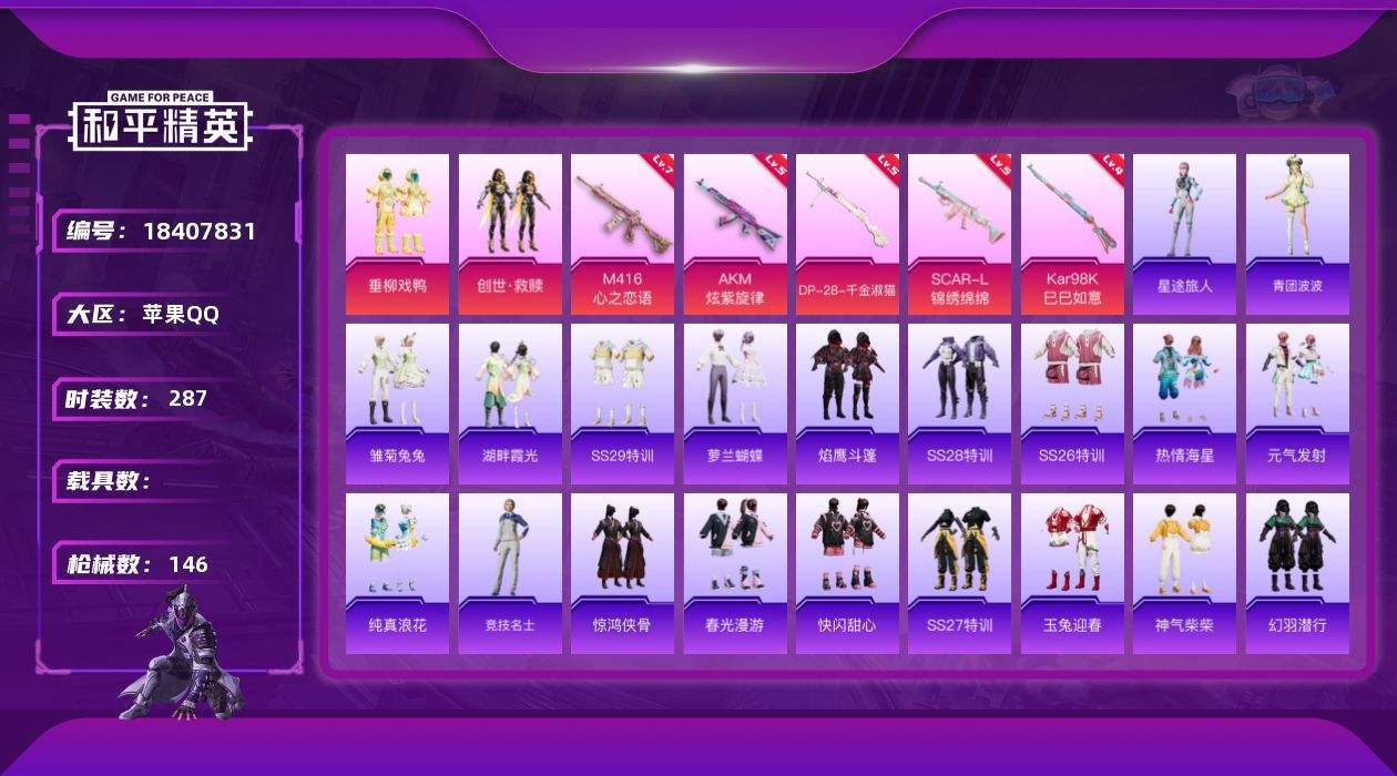 【658032】【可二次】【苹果QQ】SCAR-L-锦绣绵绵 AKM-炫紫旋律 M416-心之恋语