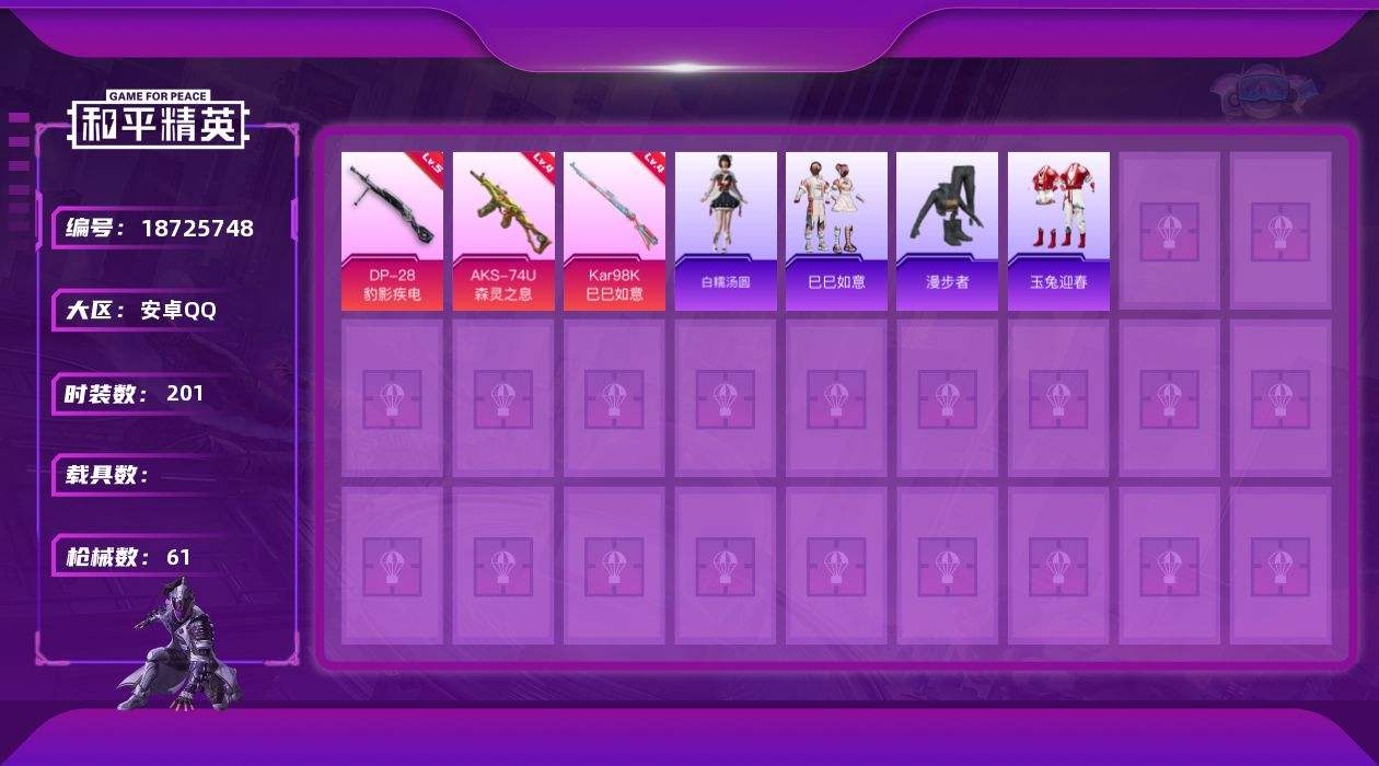 游戏区服:和平精英 / 安卓系统 / QQ账号