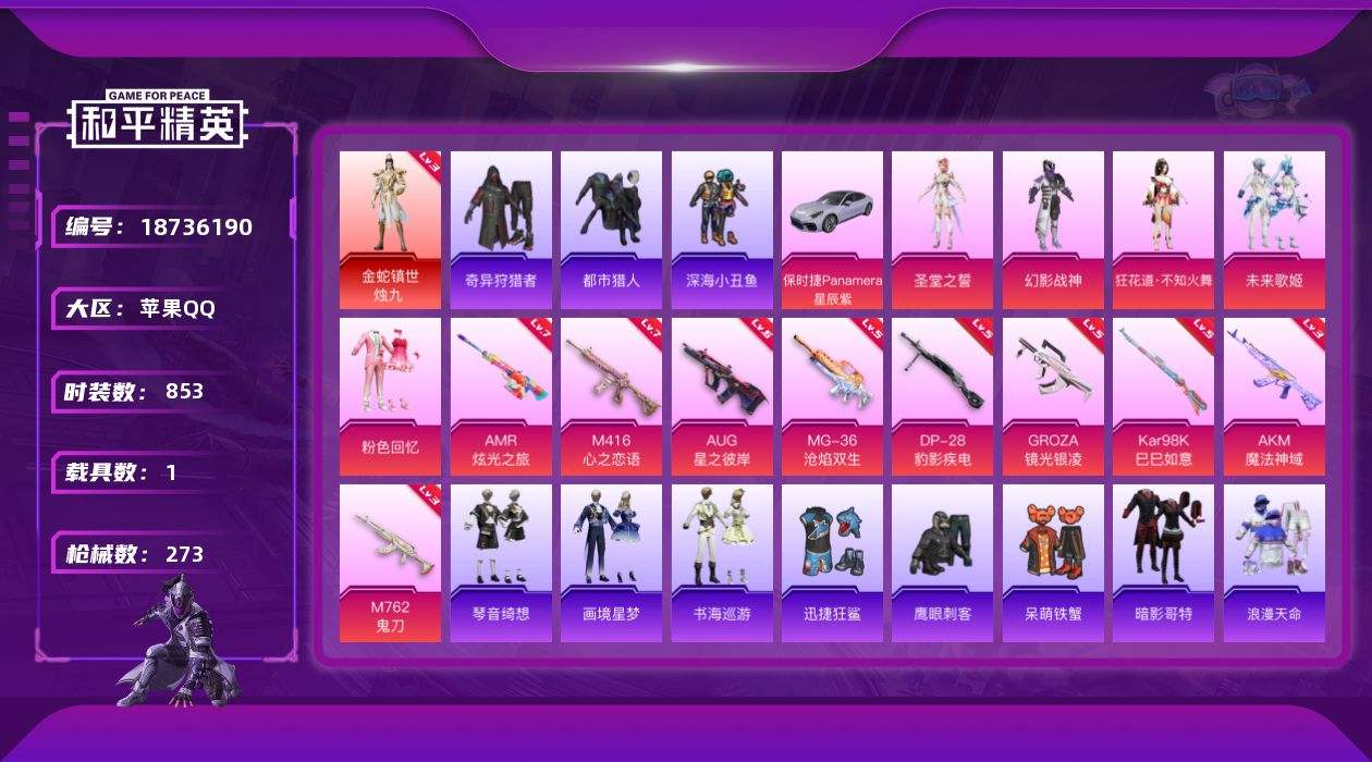 【678753】【不可二次】【苹果QQ】漫步者 都市猎人 M24-奇异狩猎者 机械英豪 金蛇镇世-烛九 极速红龙 豚鼠丹丹 M416-心之恋语 深海小丑鱼 瑞龙福将 AMR-炫光之旅 抹茶蜜豆 AUG-星之彼岸 浪漫天命 团圆交子 AKM-奇异狩猎者 粉色回忆 迅捷狂鲨 奇异狩猎者 M762-瑞龙福将 狂沙舞者 金羽特工 AKM-魔法神域 暗夜之虎 粉红小猪 幻影战神 暗影哥特 雪山精英