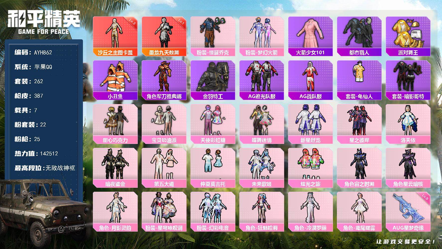 游戏区服:和平精英 / 苹果系统 / QQ帐号
