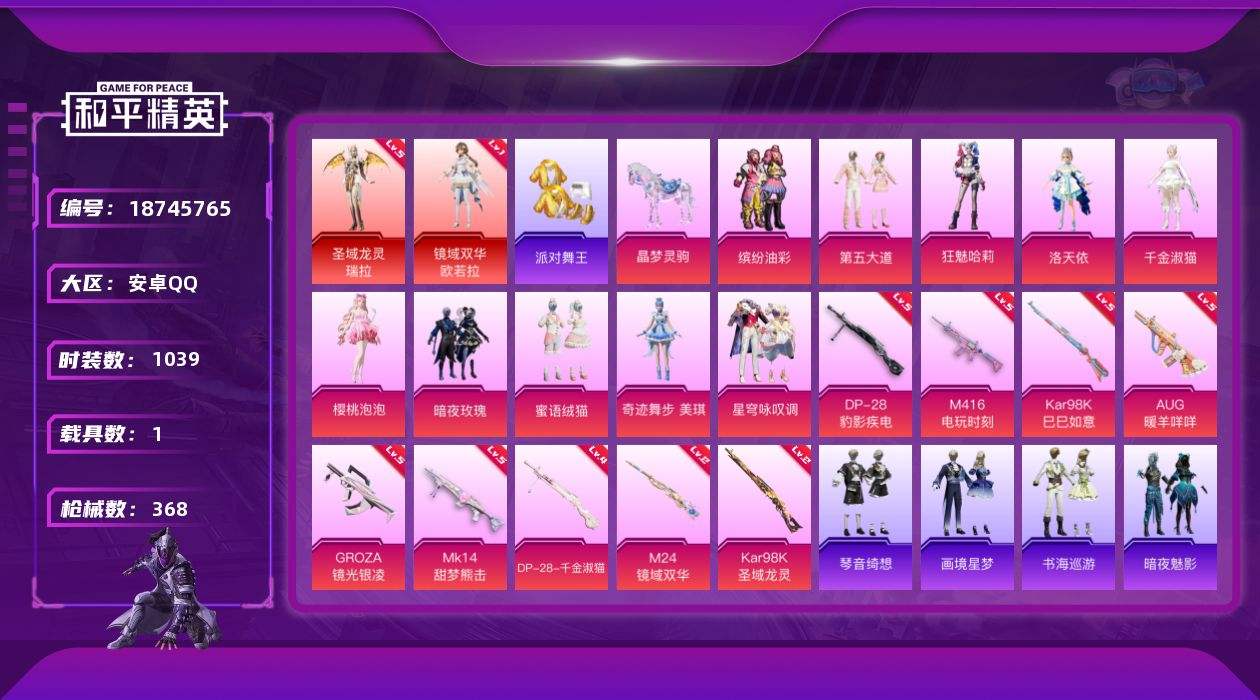 【679987】【可二次】【安卓QQ】龟仙人 红熊茄茄 M24-镜域双华 M762-瑞龙福将 安第斯皇冠 洛天依 极速红龙 镜域双华-欧若拉 M416-电玩时刻 暗夜玫瑰 童话森林 圣域龙灵-瑞拉 缤纷油彩 天之羽翼飞行器 瑞龙福将 派对舞王 雪山精英 团圆交子