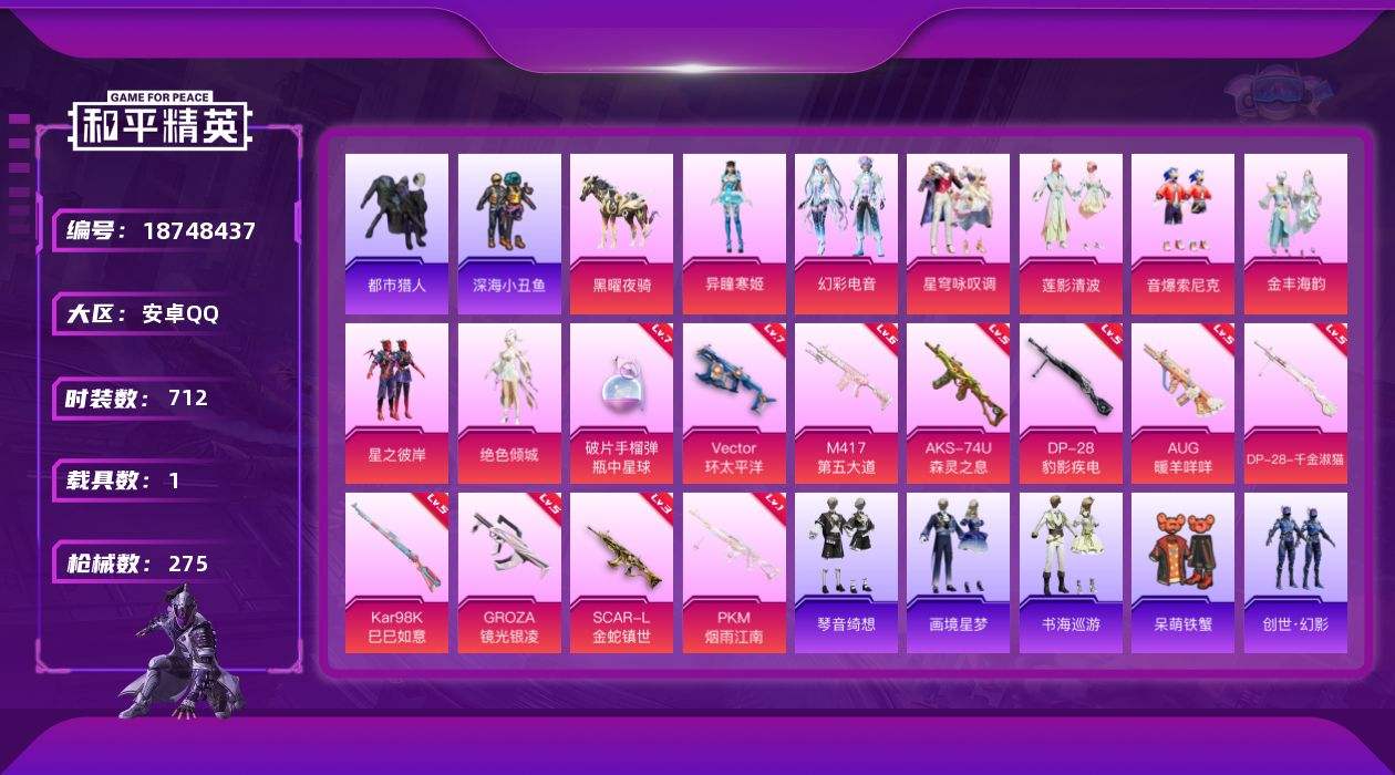 【680352】【不可二次】【安卓QQ】龟仙人 都市猎人 PKM-江南烟雨 Vector-环太平洋 星之彼岸飞行器 M417射手步枪 极速红龙 音爆索尼克 星之彼岸 AKM-缤纷海域 深海小丑鱼 绝色倾城飞行器 M417-第五大道 梦之呓语